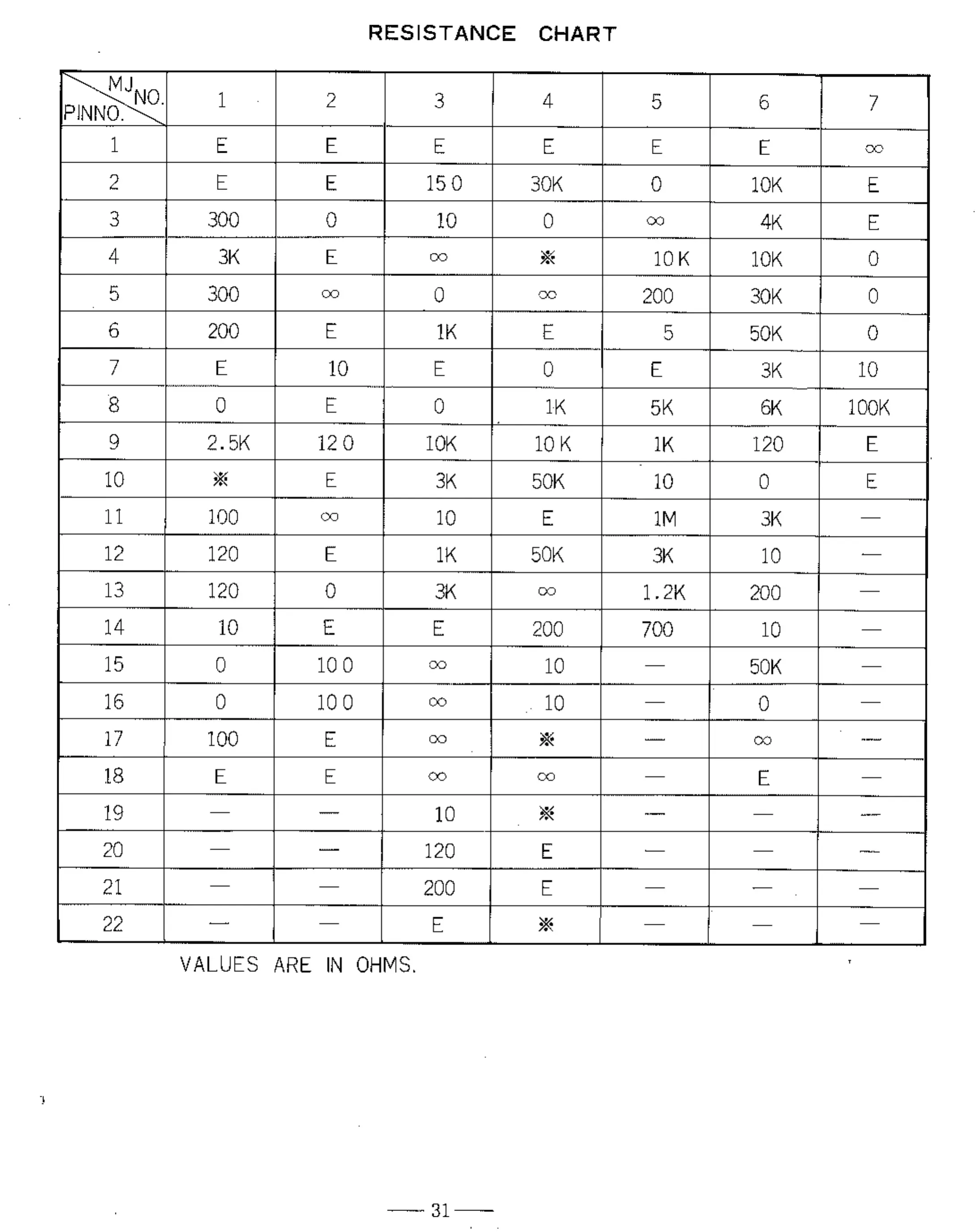Yaesu FT-101B - Resistance Chart