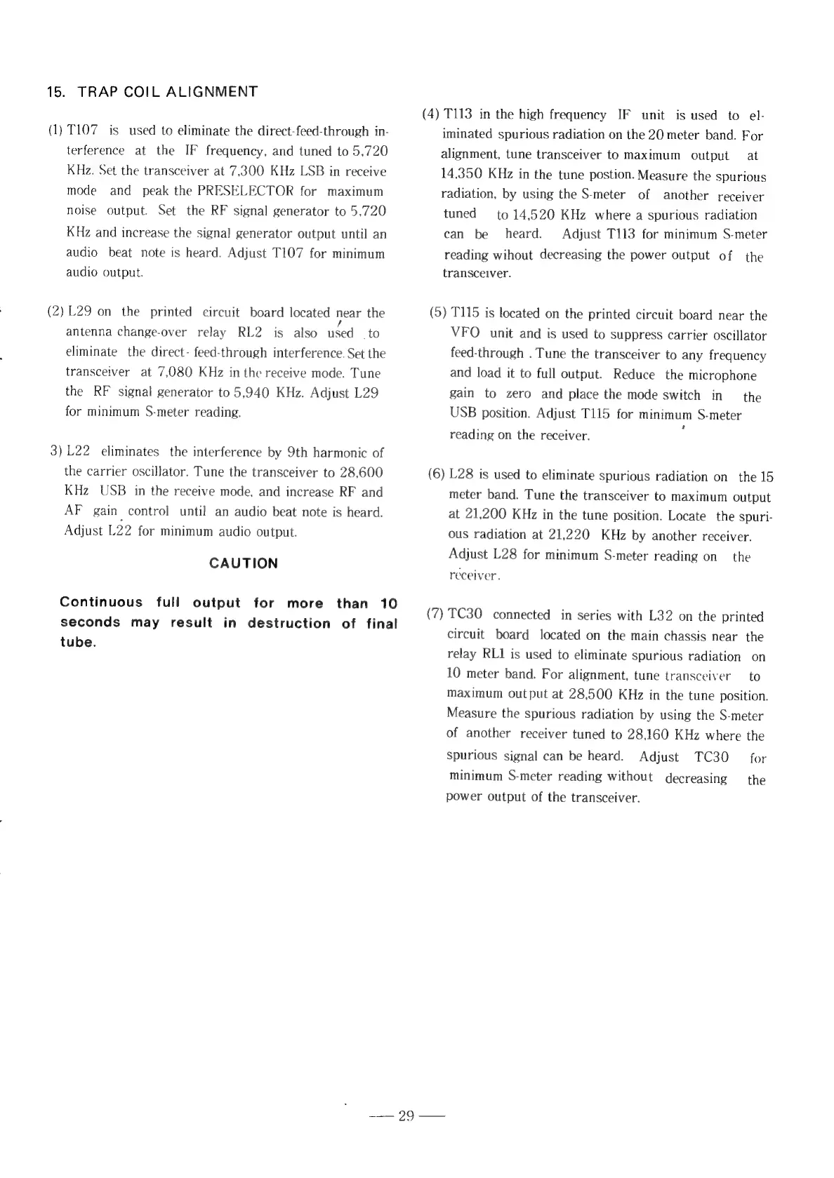 Yaesu FT-101E - 15. TRAP COIL ALIGNMENT