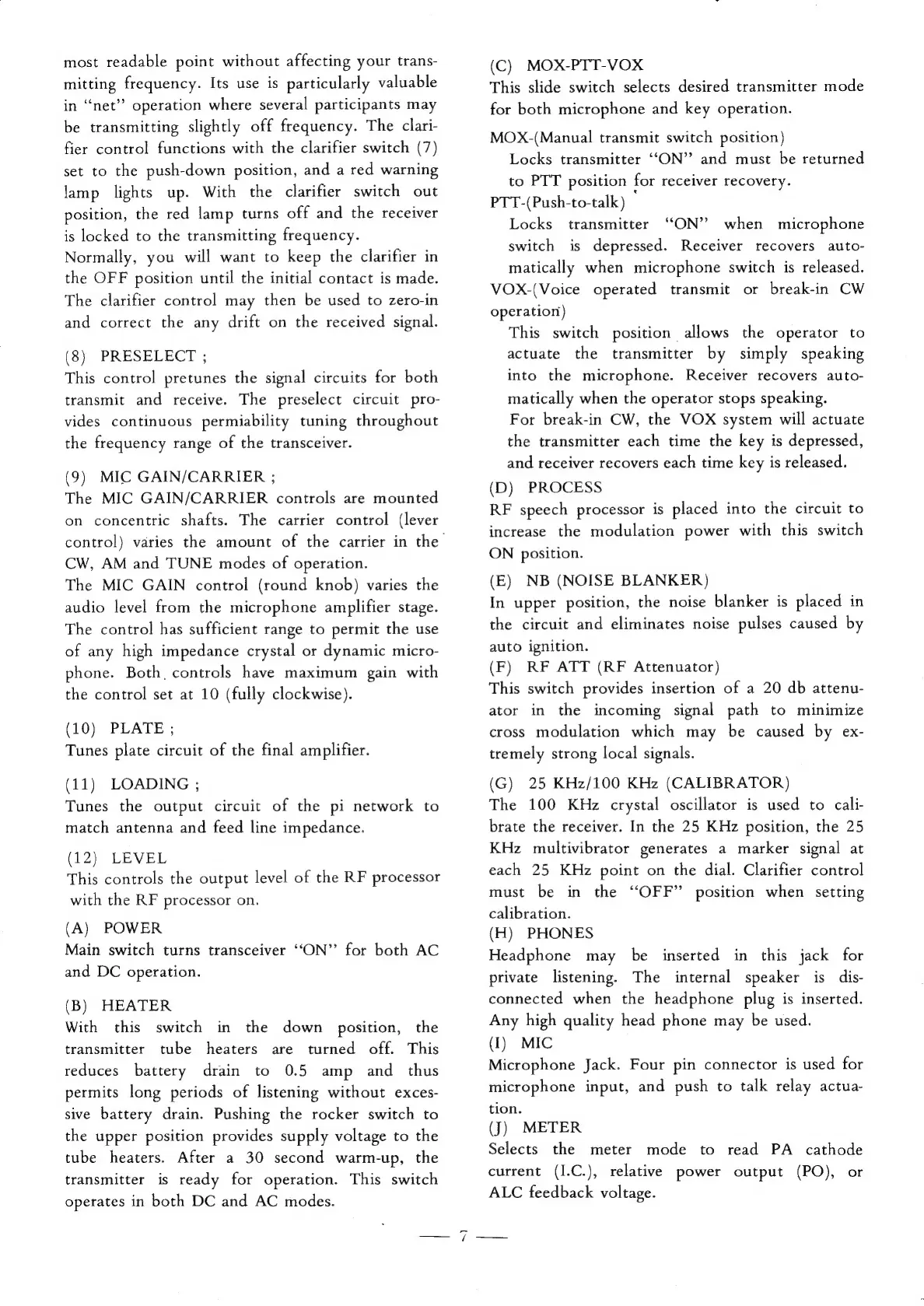 Yaesu FT-101E - PRESELECT; MIC GAIN;CARRIER; PLATE; LOADING