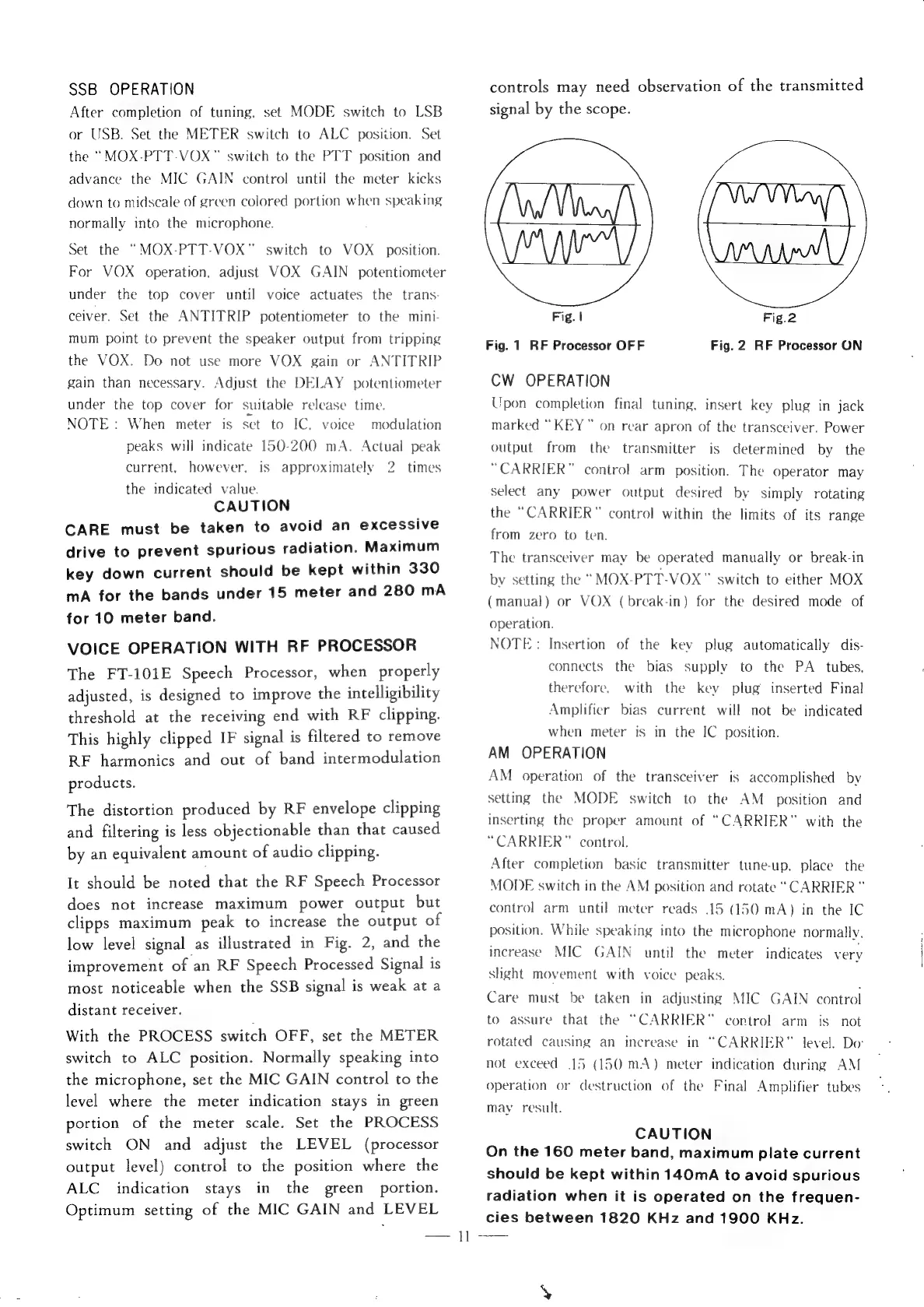 Yaesu FT-101EE - Transmitter Tune-Up Modes; Operating Modes: SSB, CW, and AM