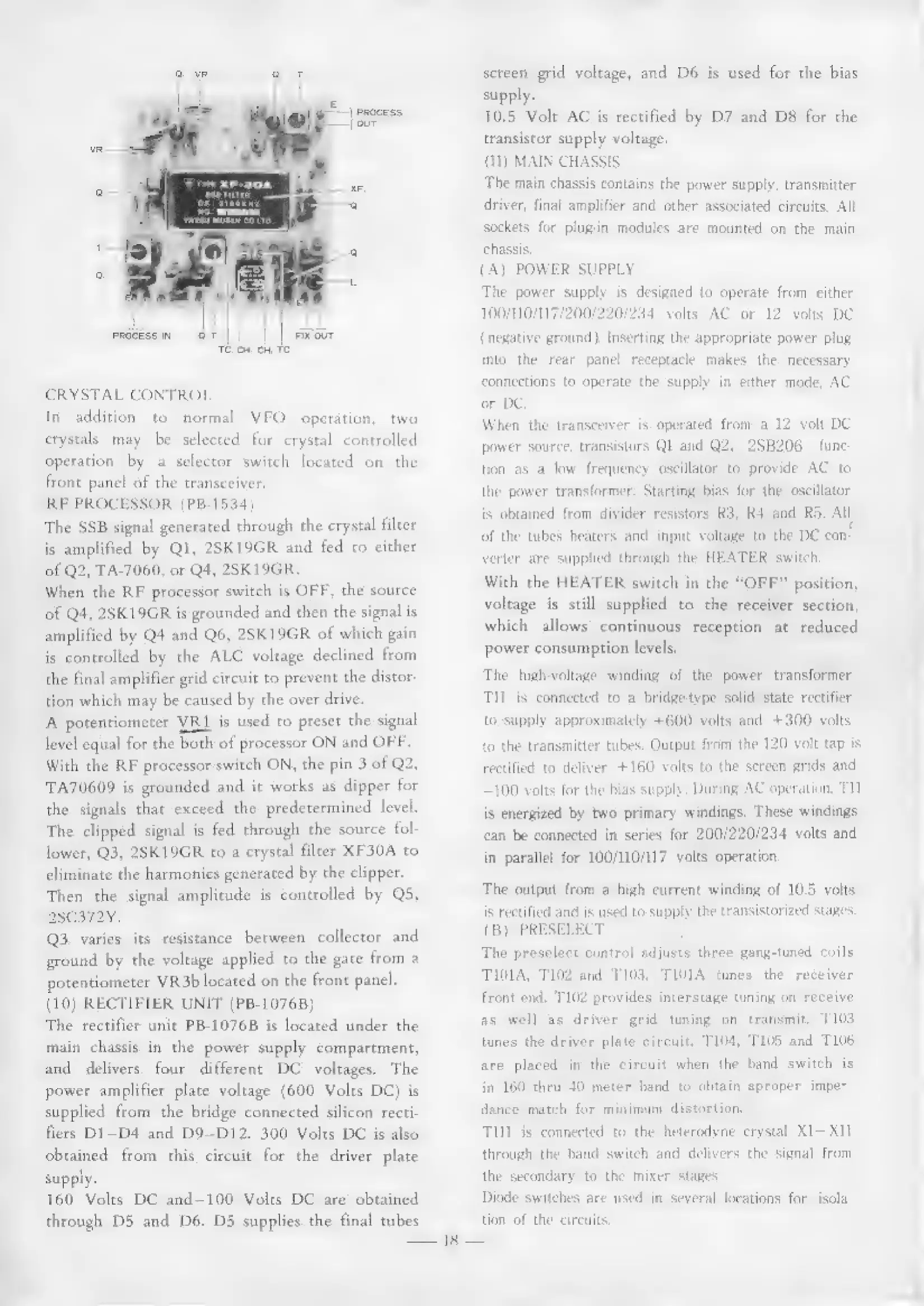 Yaesu FT-101EE - Main Chassis Components Overview; Power Supply System Details