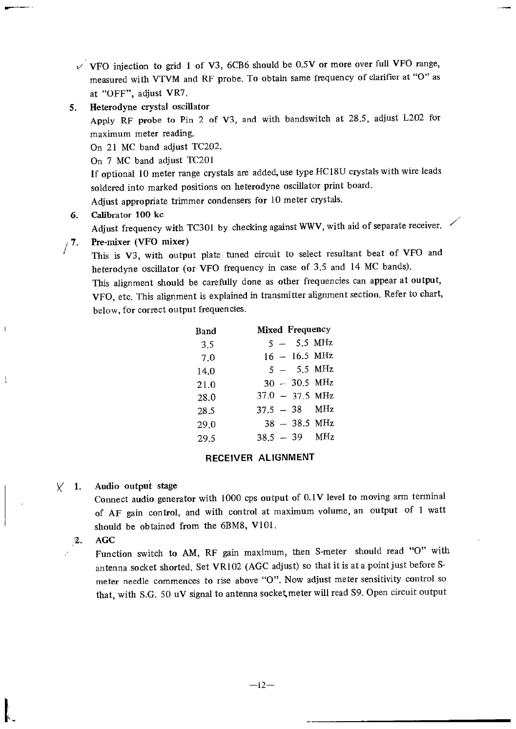 Yaesu FT-200 - Oscillator and Mixer Alignment; Receiver Alignment
