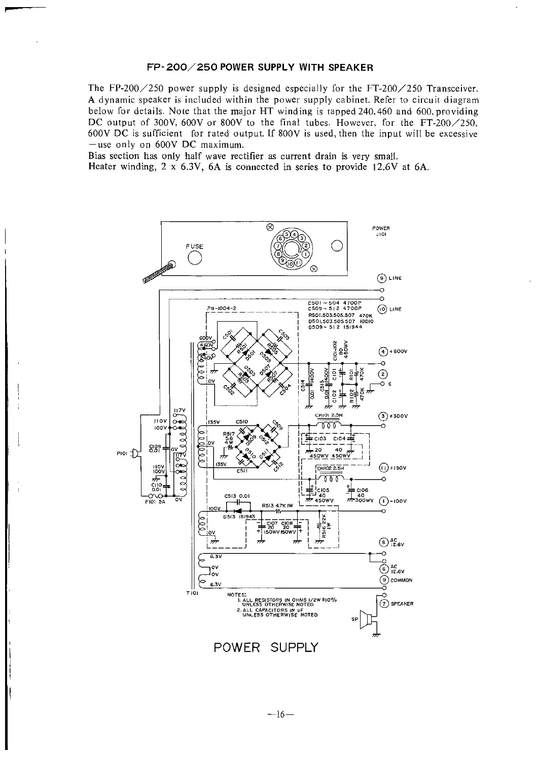 Yaesu FT-250 - FP-200;250 Power Supply with Speaker