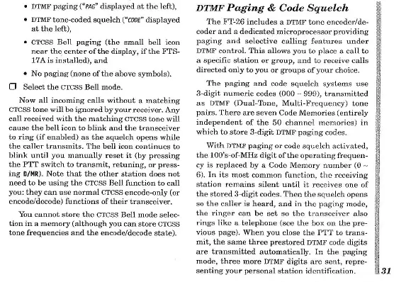 Yaesu FT-26 - DTMF Code Squelch; DTMF Paging; Individual Codes