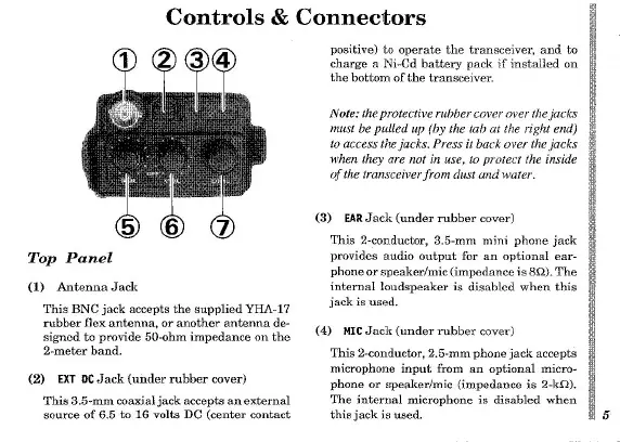 Yaesu FT-26 - Controls & Connectors; Top Panel