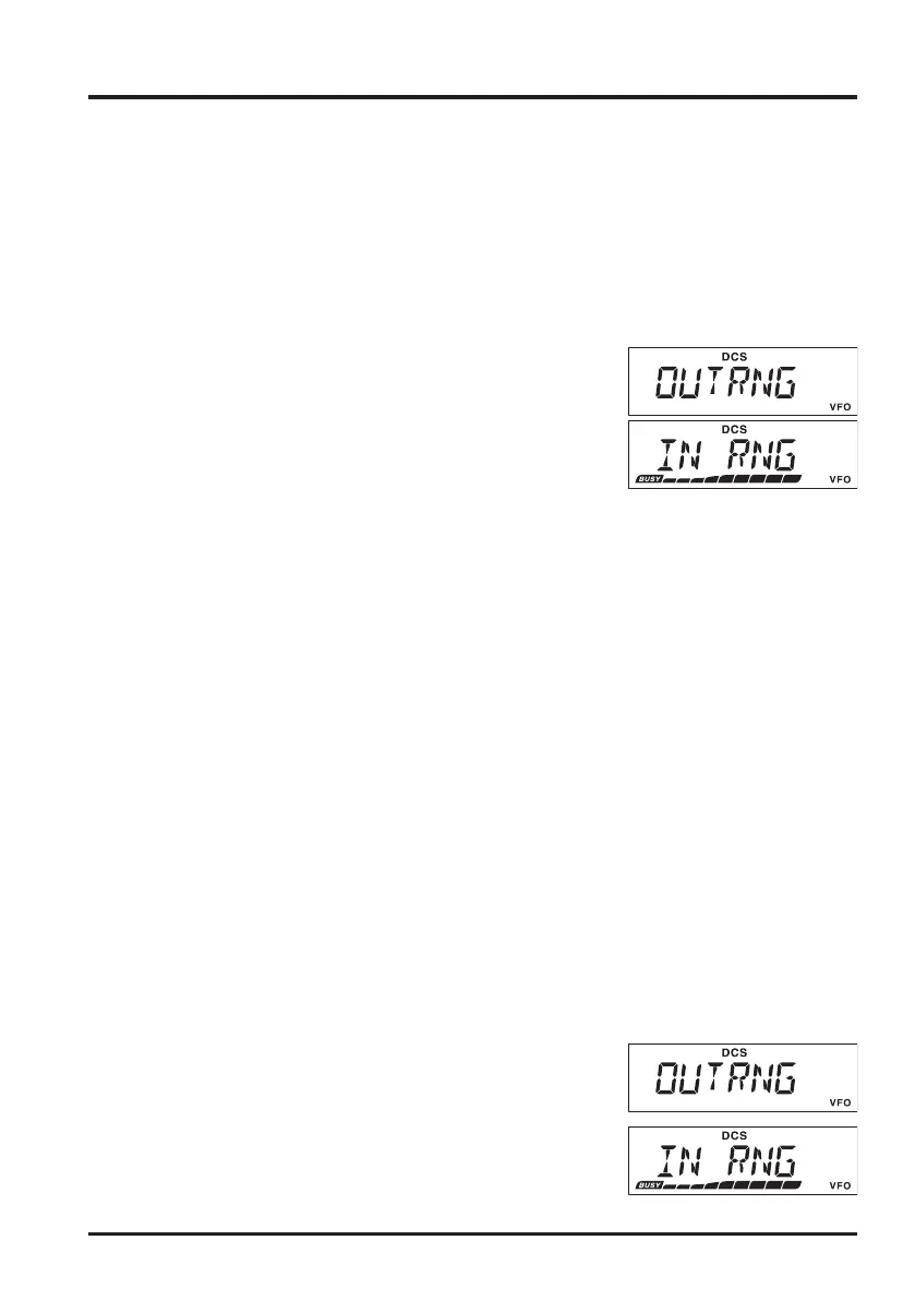 OUTRNG.” If you move back into range, your radio will again beep, and the display will
