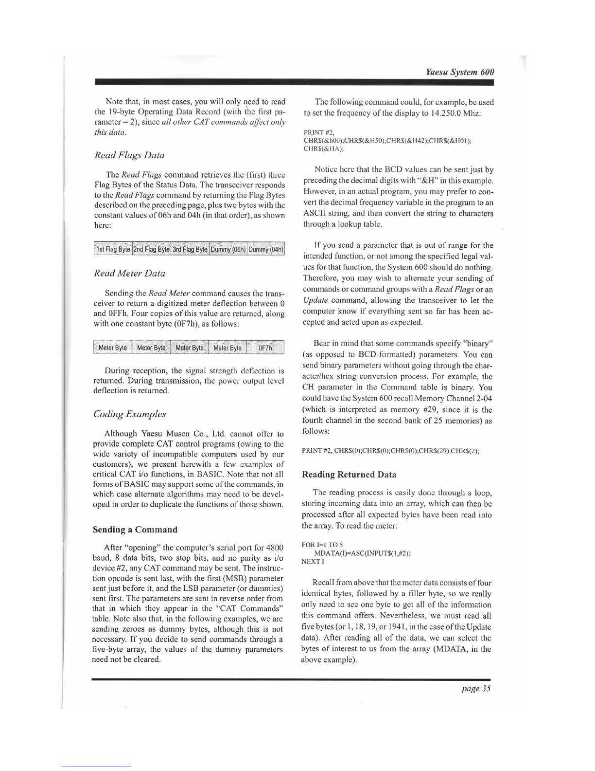 Yaesu FT-600 - Sending a Command; Reading Returned Data; Read Flags Data; Read Meter Data