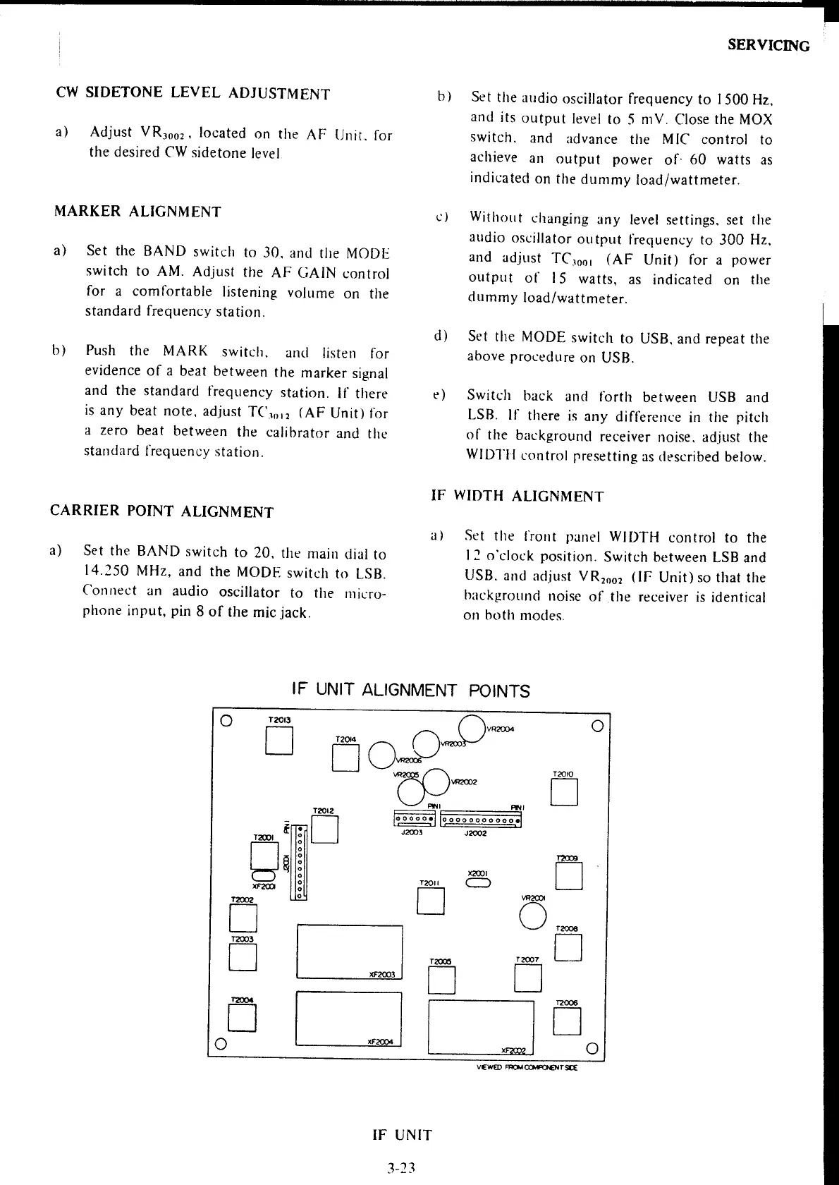 Yaesu FT-707 - CW Sidetone Level Adjustment; Marker Alignment; IF Unit Alignment Points