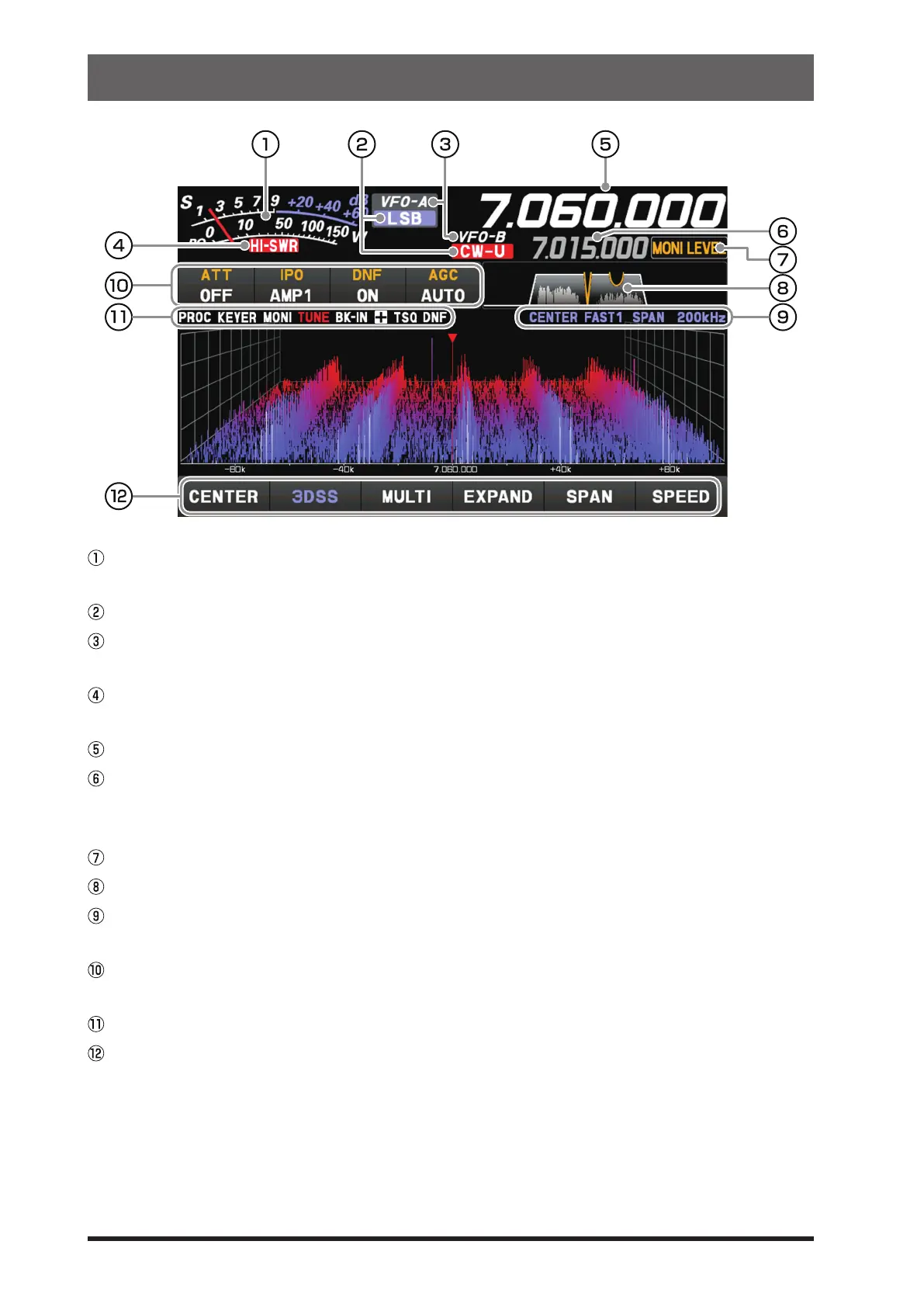 3DSS display and waterfall display, to display the oscilloscope and AF-FFT, to switch