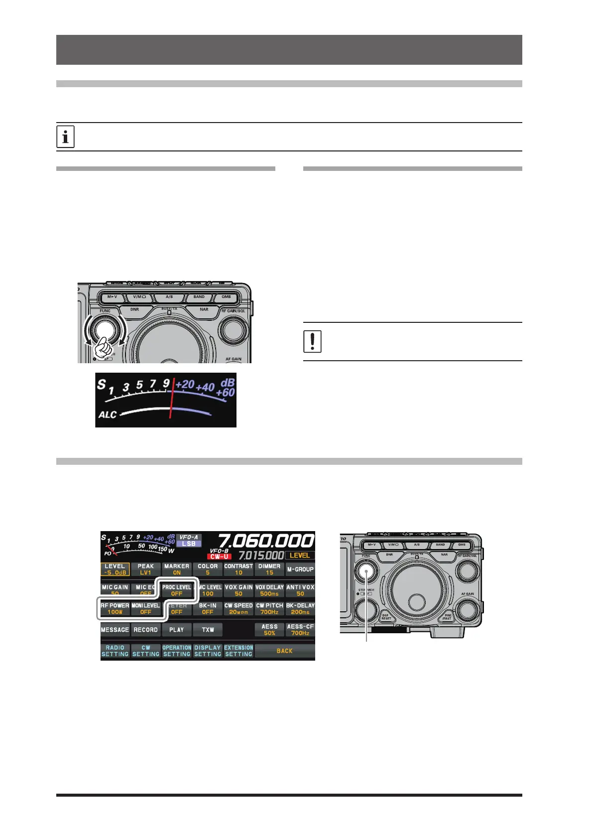 3. Key TX and adjust the [FUNC] knob to set the