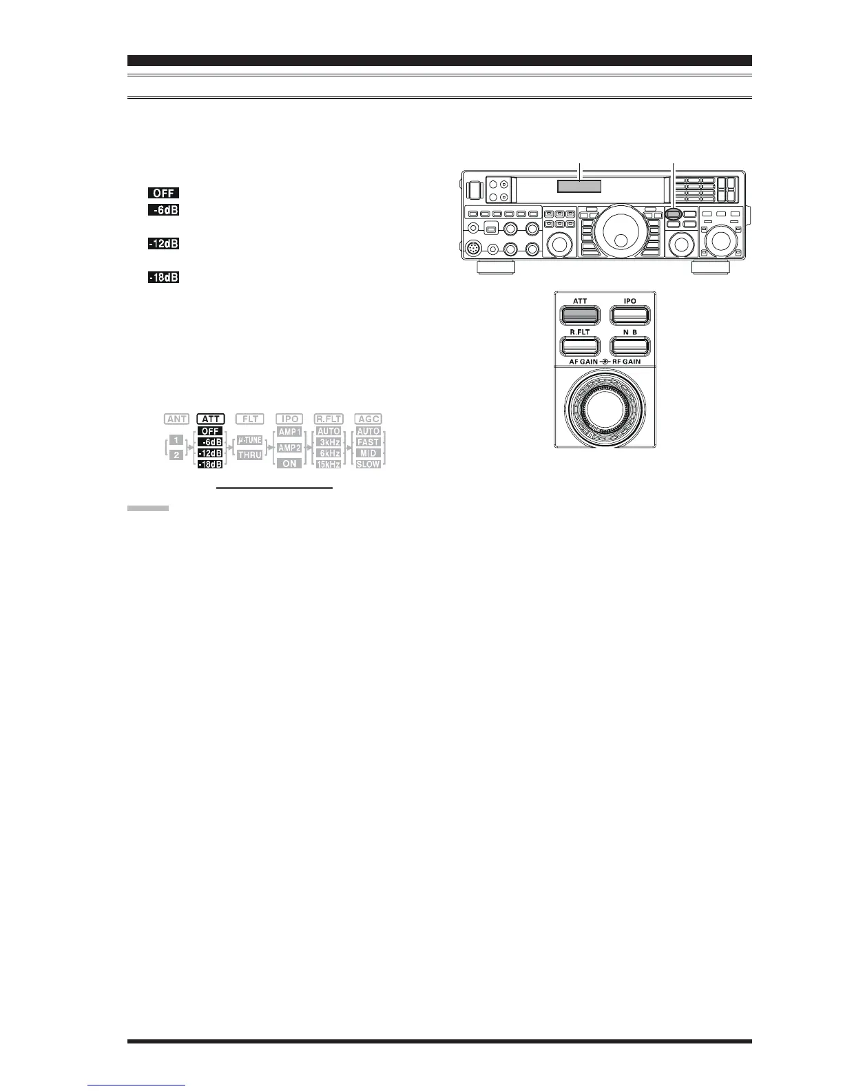 The attenuator selection will be memorized independently on each VFO stack of the VFO-A and VFO-B.
