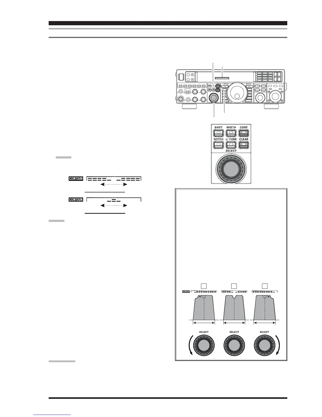 The Contour filtering system provides a gentle perturbation of the IF filter passband. The Contour is set to either suppress,