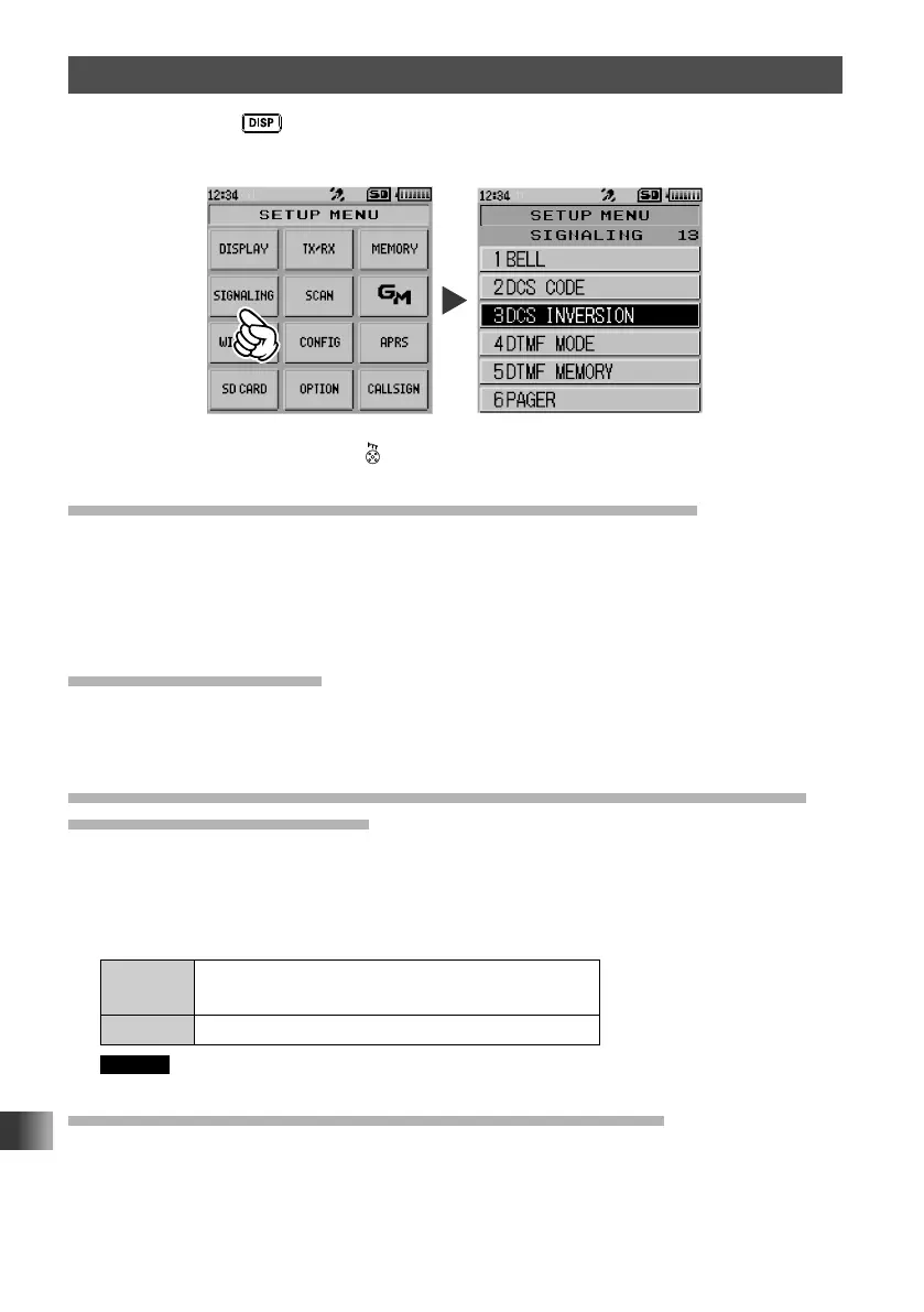 Select the DCS code out of the 104 codes from 023 to 754 by selecting [2 DCS CODE].