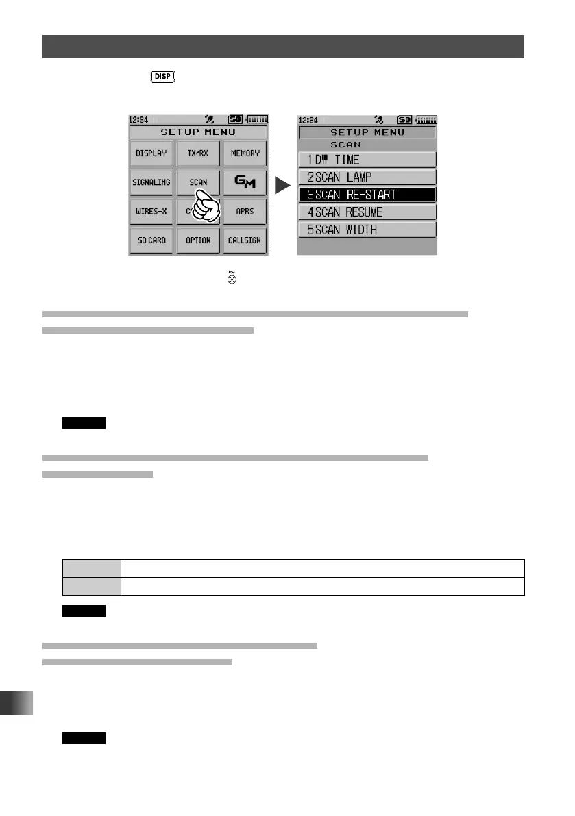 Set the time interval to resuming scanning after a received signal ends during scanning.
