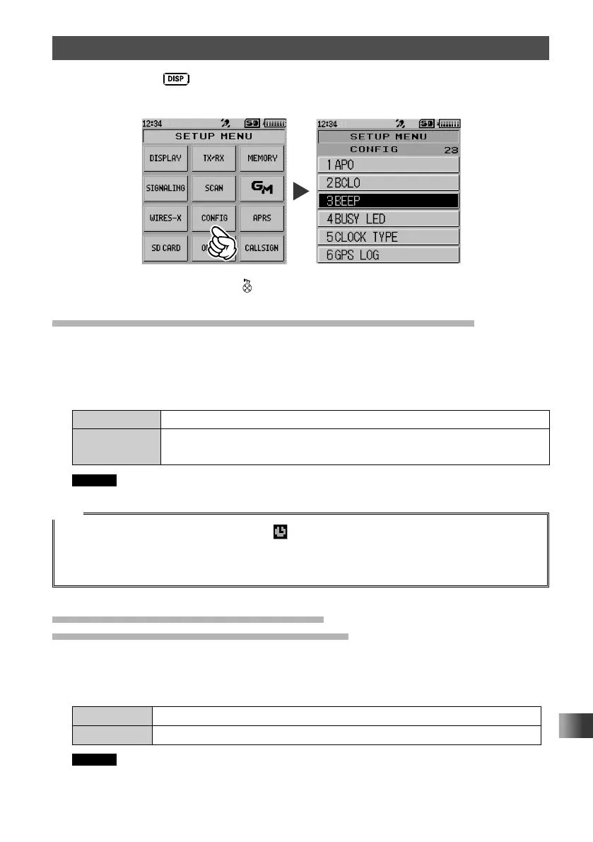 Press and hold the key for over one second to display “SETUP MENU”, then touch