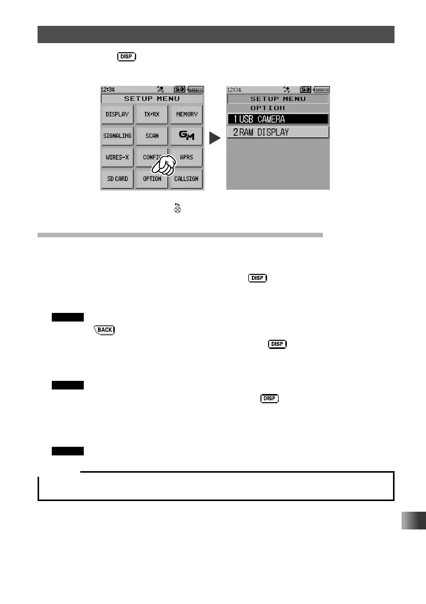 Press and hold the key for over one second to display “SETUP MENU”, then touch