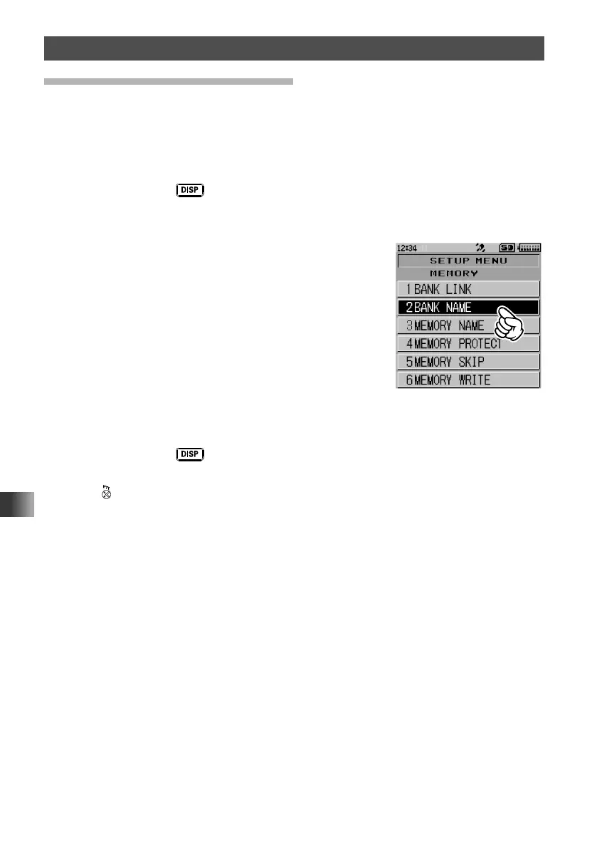 6 Input a bank memory name (See “Entering Letters” on page 19).