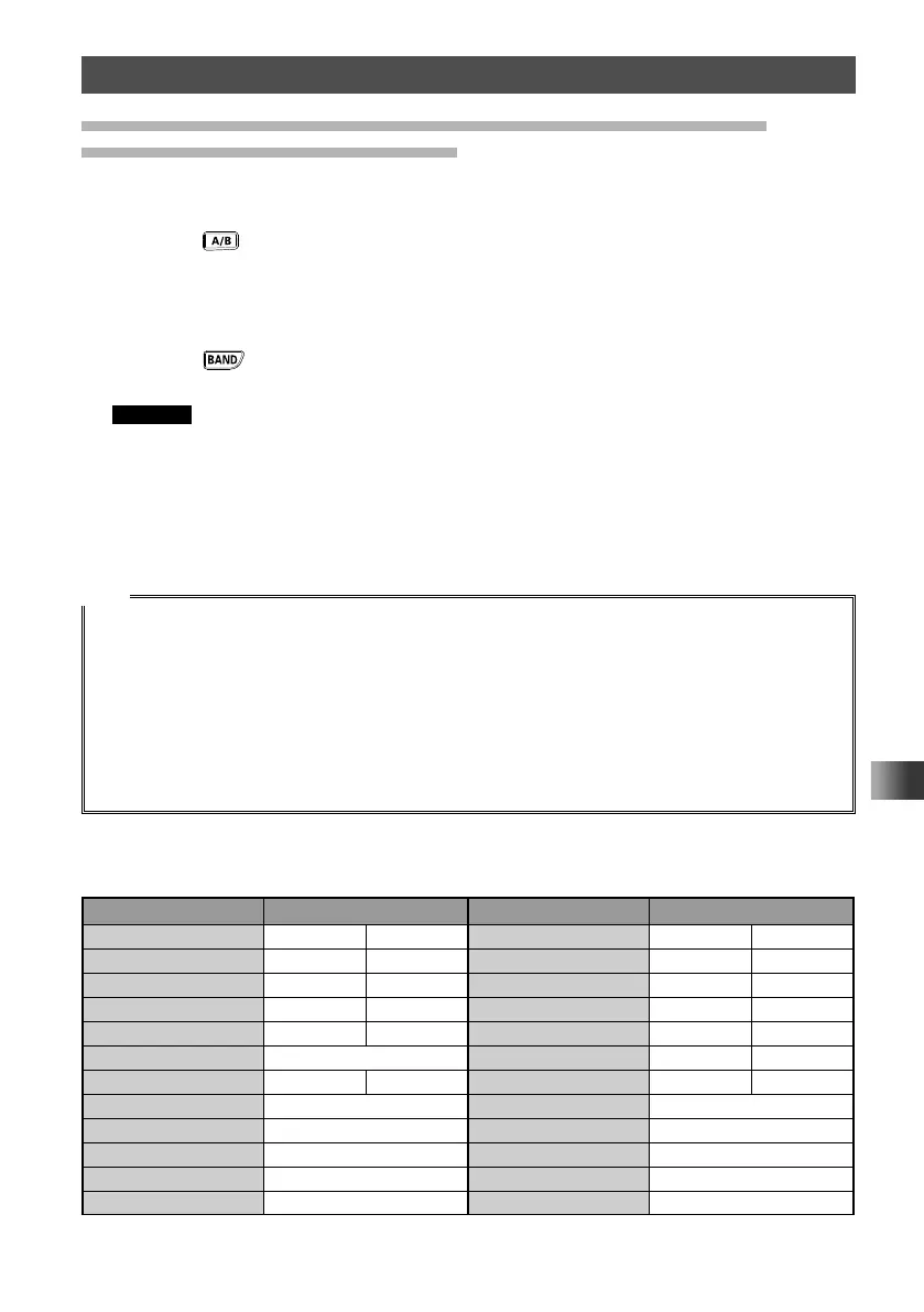 1 Press the key to set the A-band as the operating band.