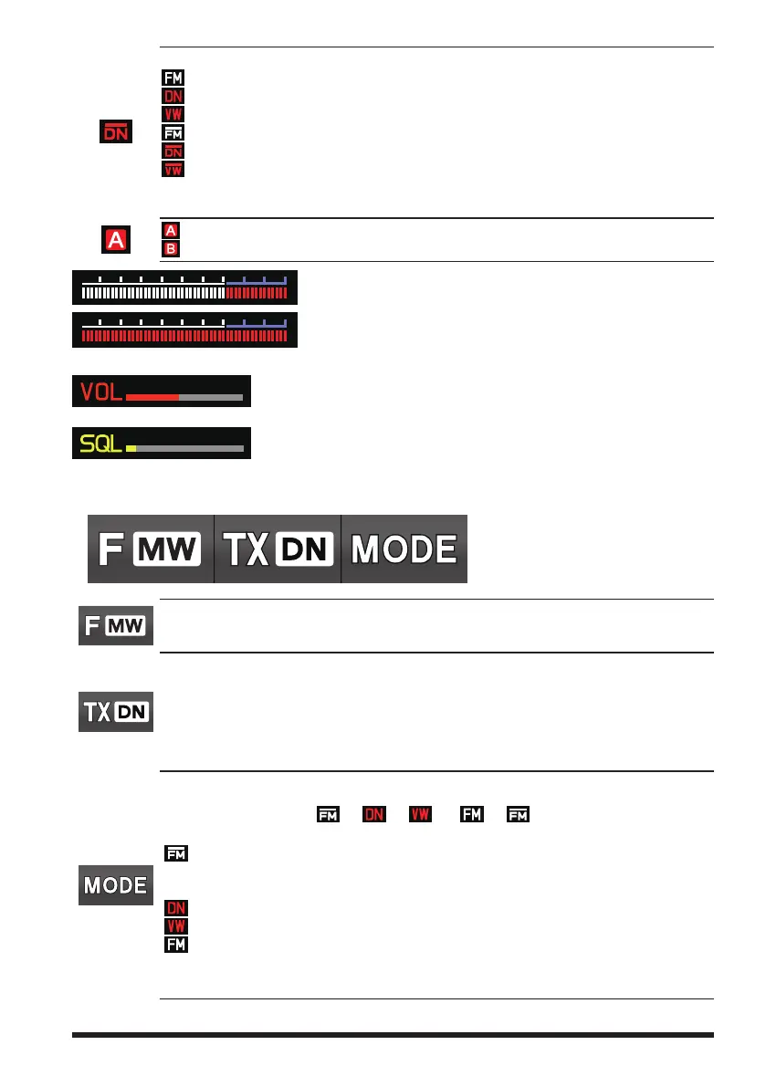 : PO meter (Displays transmit output in 4 levels when transmit-