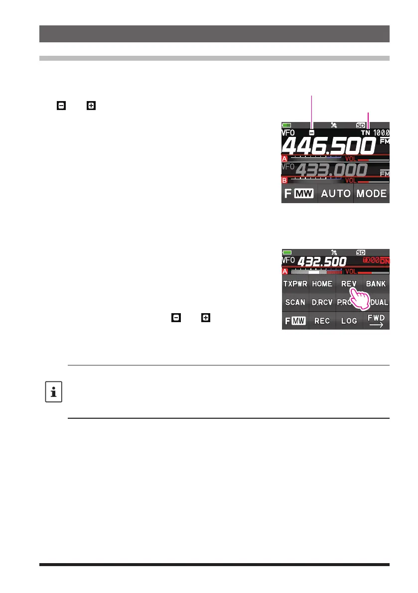 The “reverse” state temporarily reverses the transmit and receive frequencies. This
