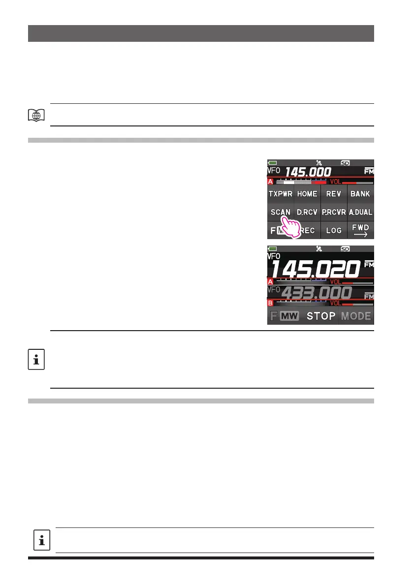 3. Press the PTT switch or touch [STOP] to cancel the scanning.