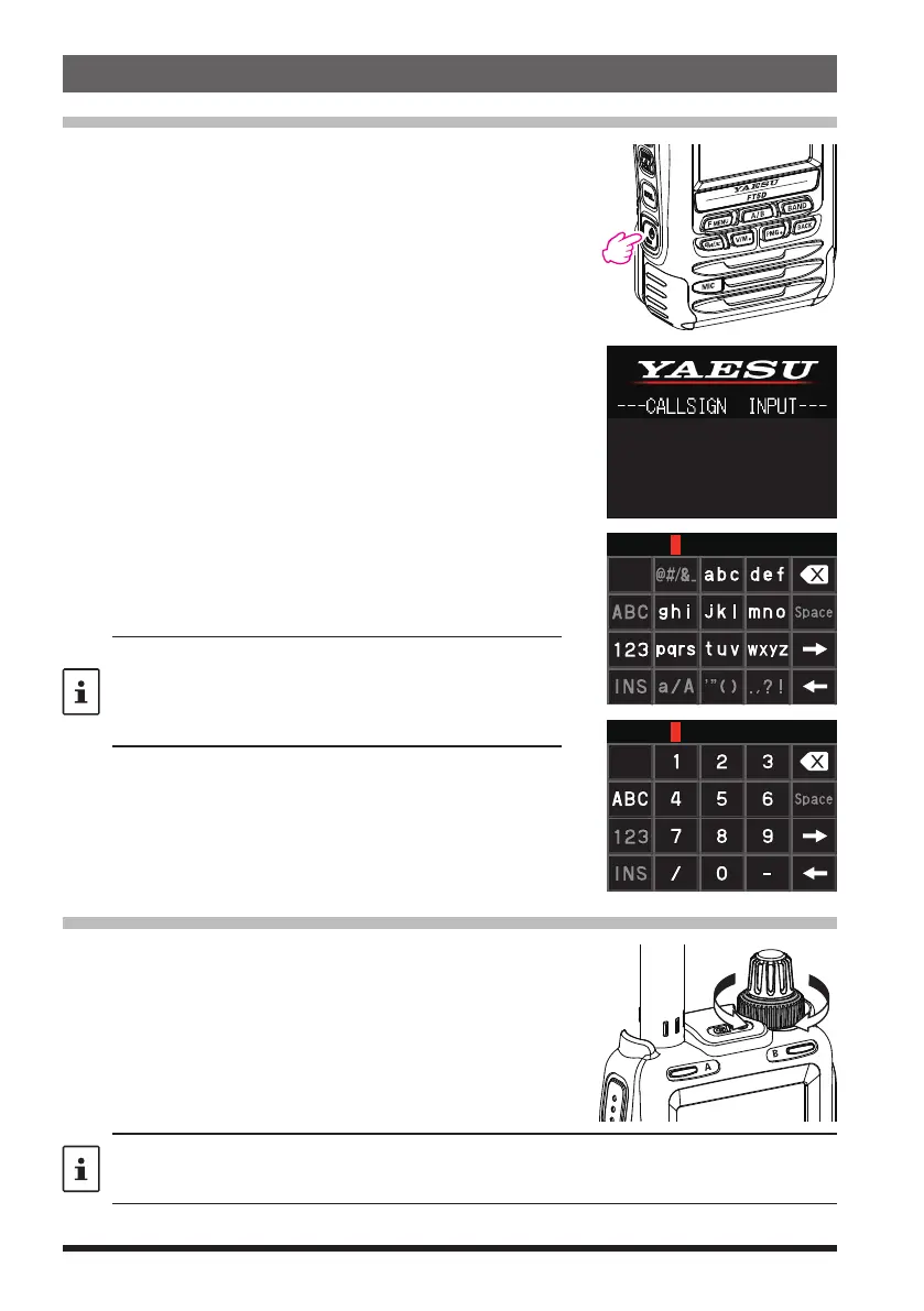 2. Input the call sign (toggle the alphabet input screen,