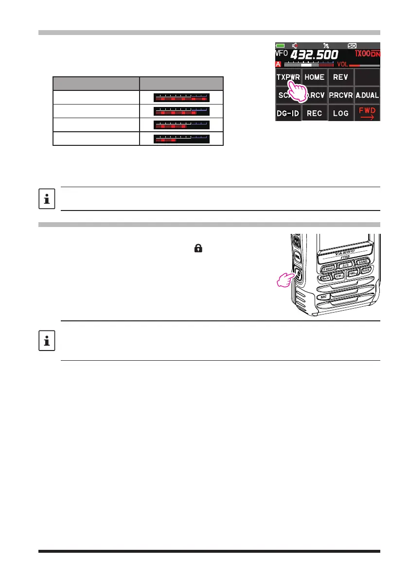• The keys, the DIAL knob, and the PTT switch may be selected to be locked using Setup