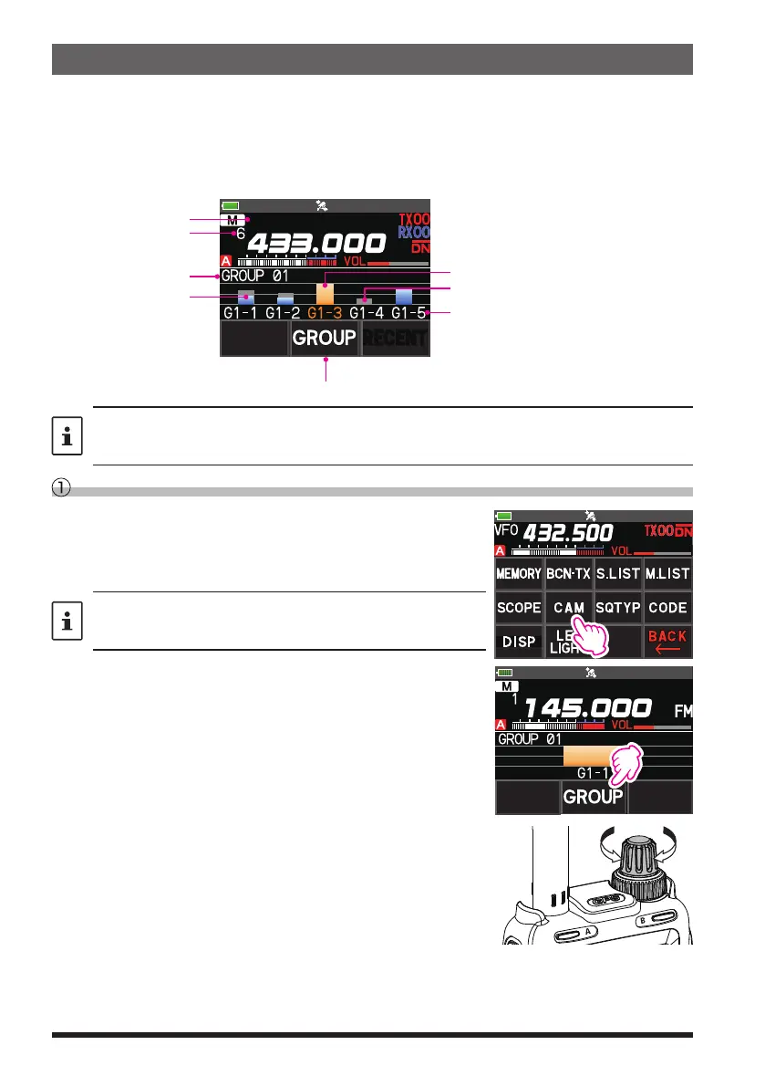radio; 50MHz band; etc.) are registered to CAM, a gray bar graph is displayed. Touch the bar