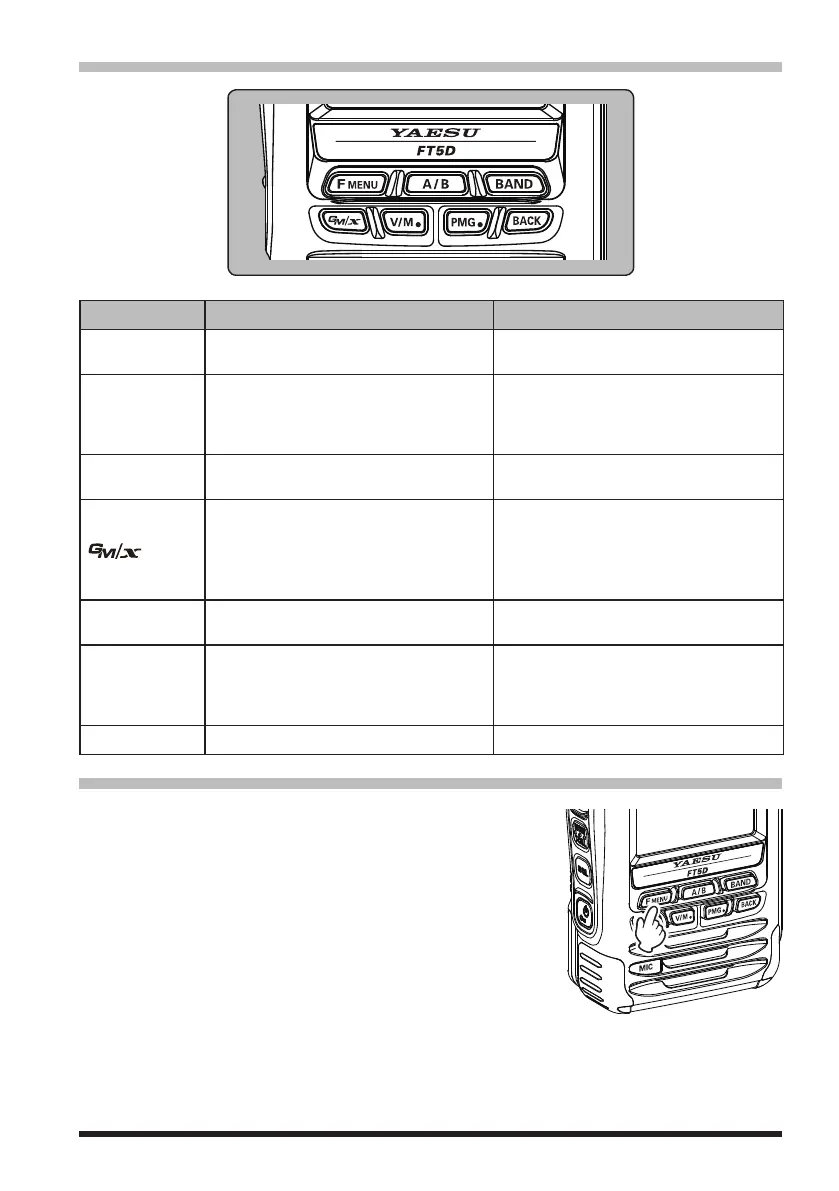 Press to turn the GM function ON/