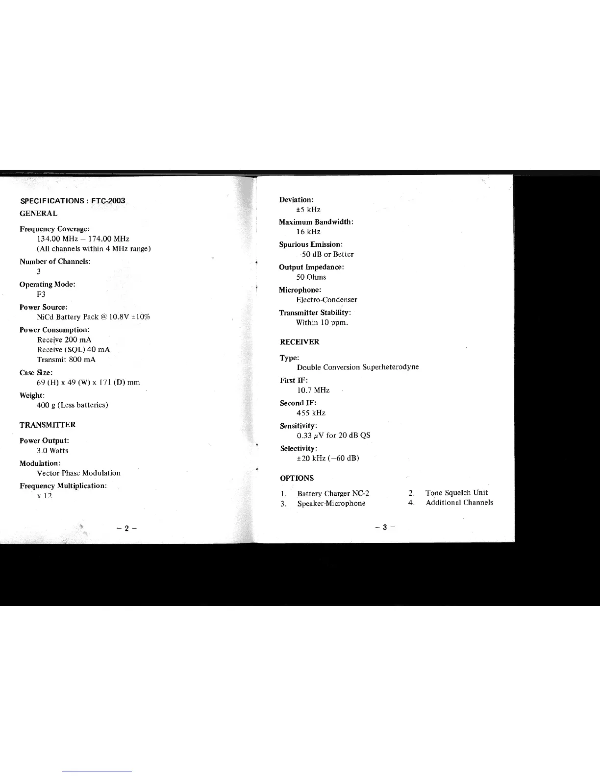 Yaesu FTC-2003 - Specifications