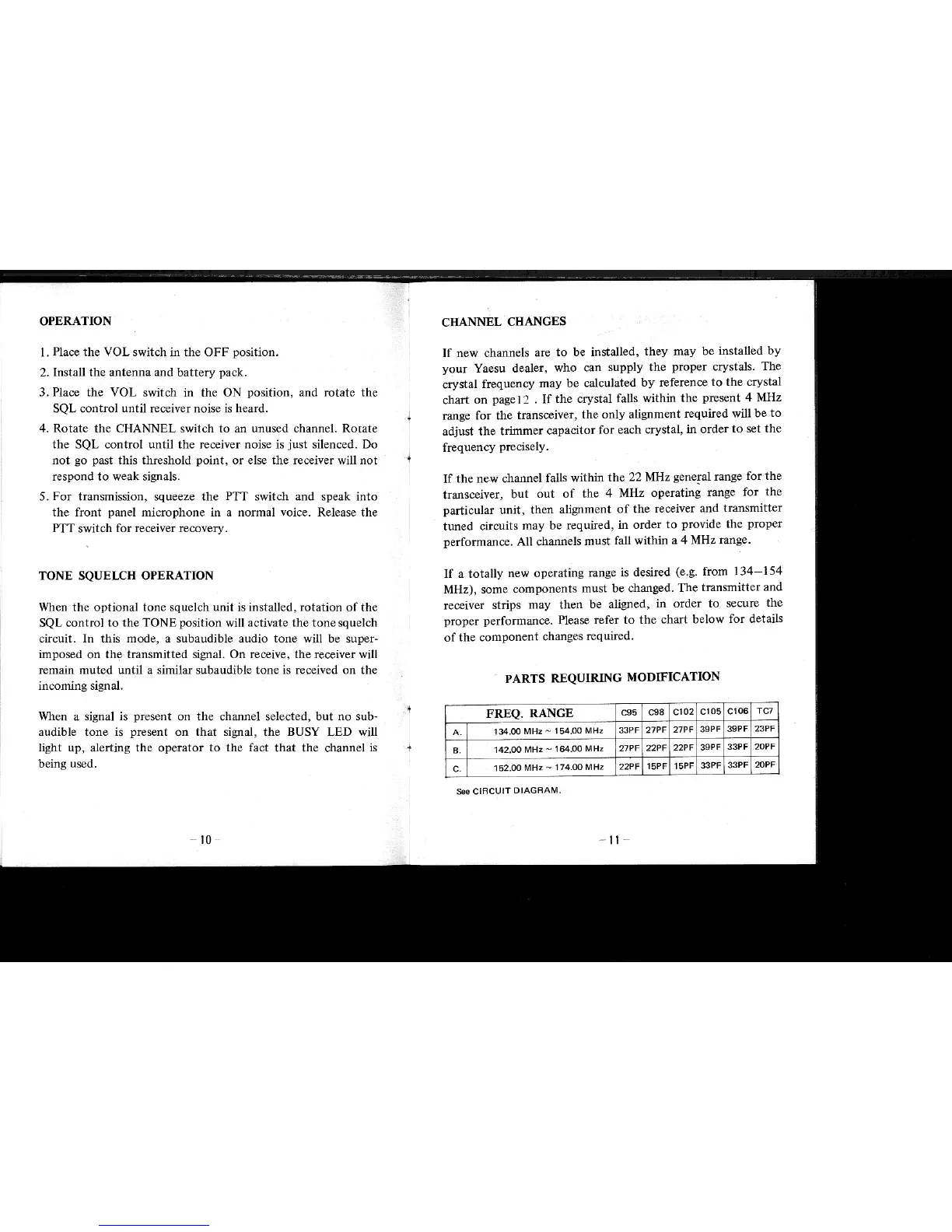 Yaesu FTC-2003 - Operation; Tone Squelch Operation; Channel Changes