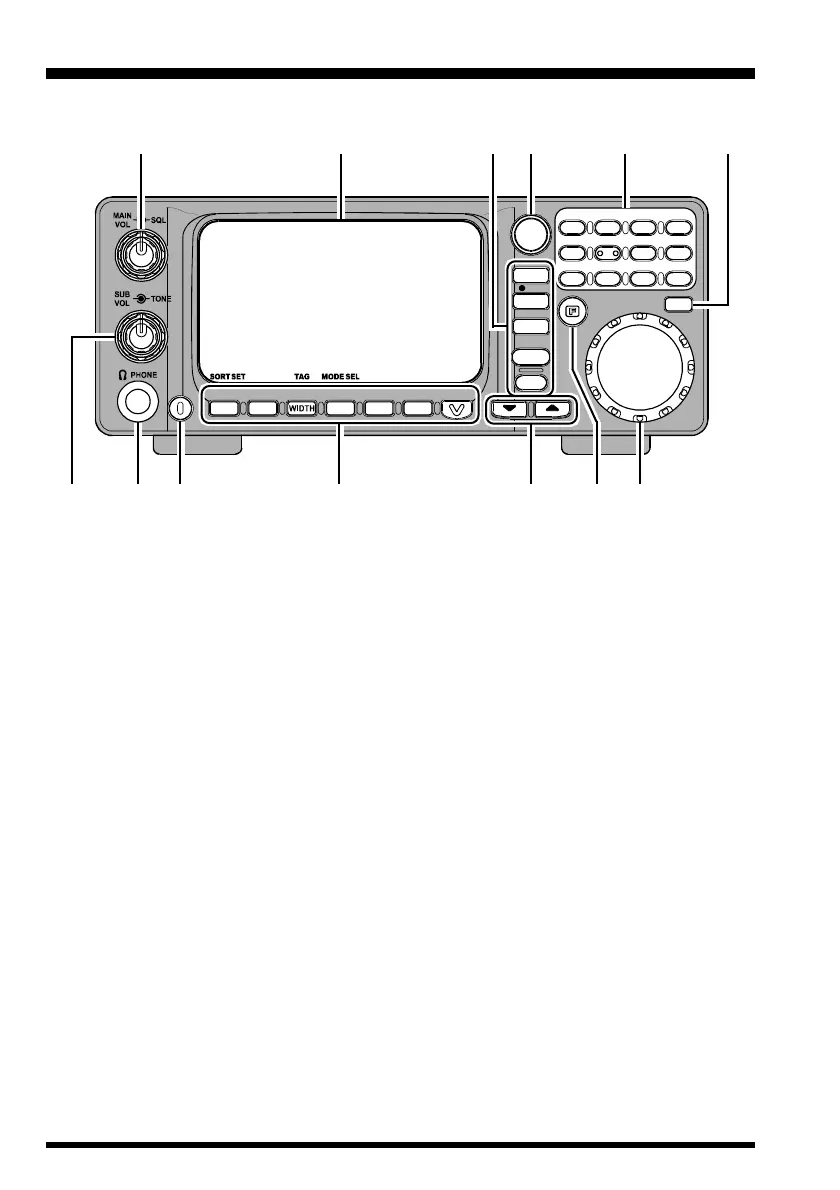 The outer SQL knob sets the signal level threshold at which MAIN receiver audio is