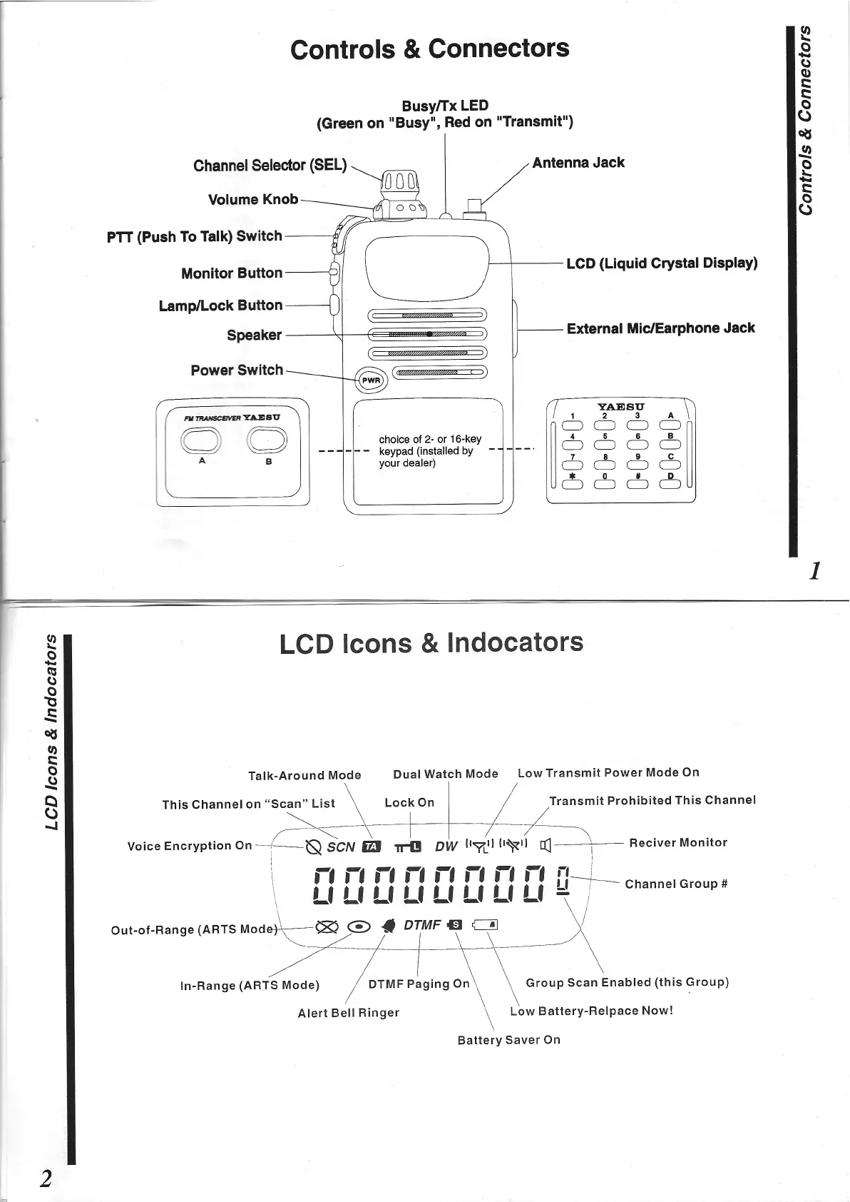 Yaesu VX-10 - Radio Controls and Display; Controls and Connectors; LCD Icons and Indicators