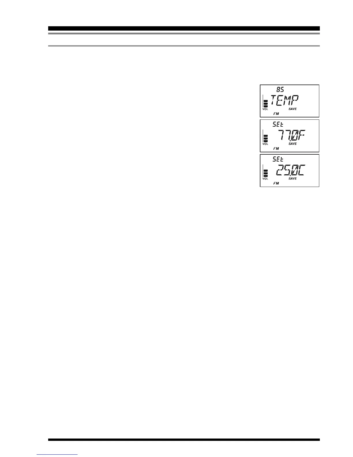 The VX-3R/E can display the radio’s inside case temperature, measured by an internal sen-