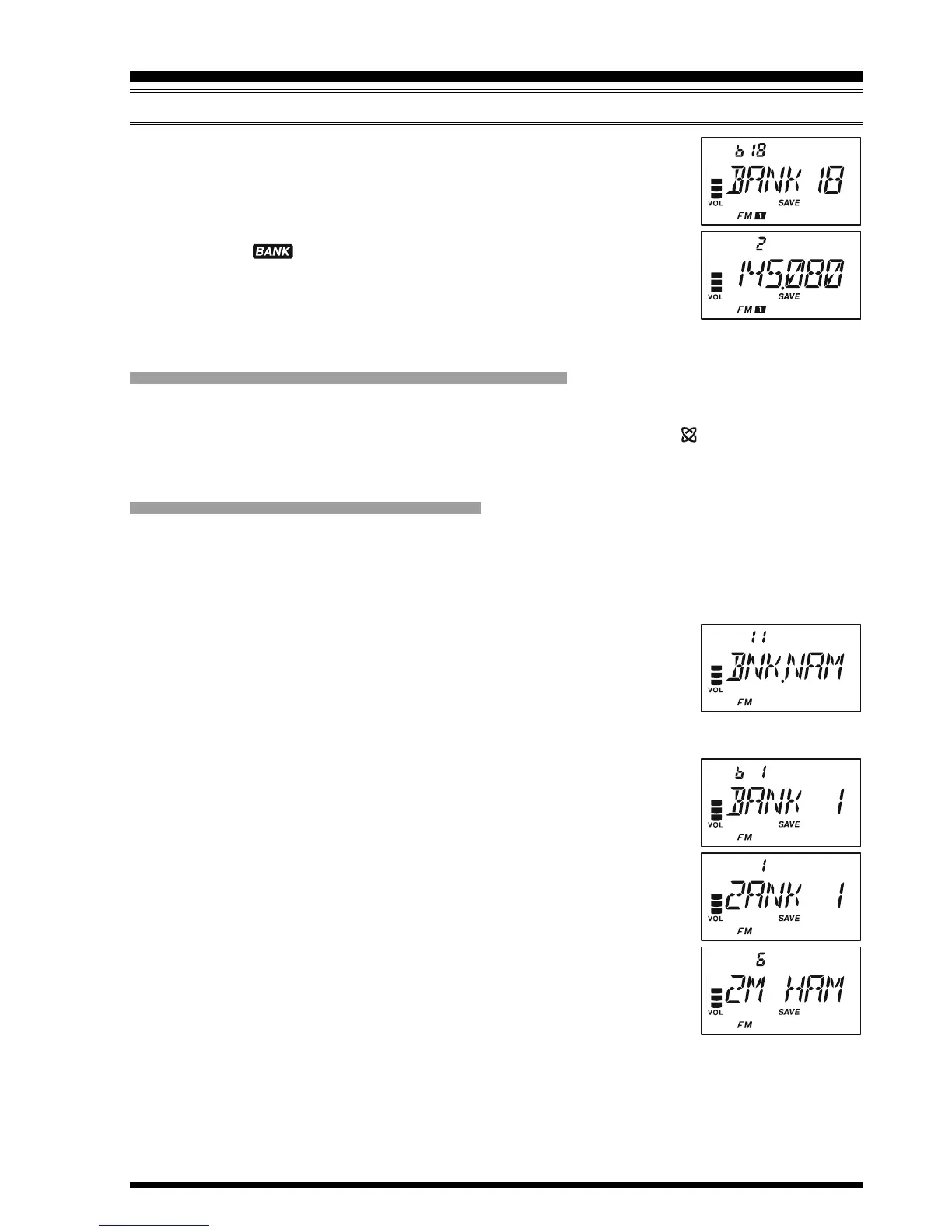 You may change the default Memory Bank Names, which are shown on the display while