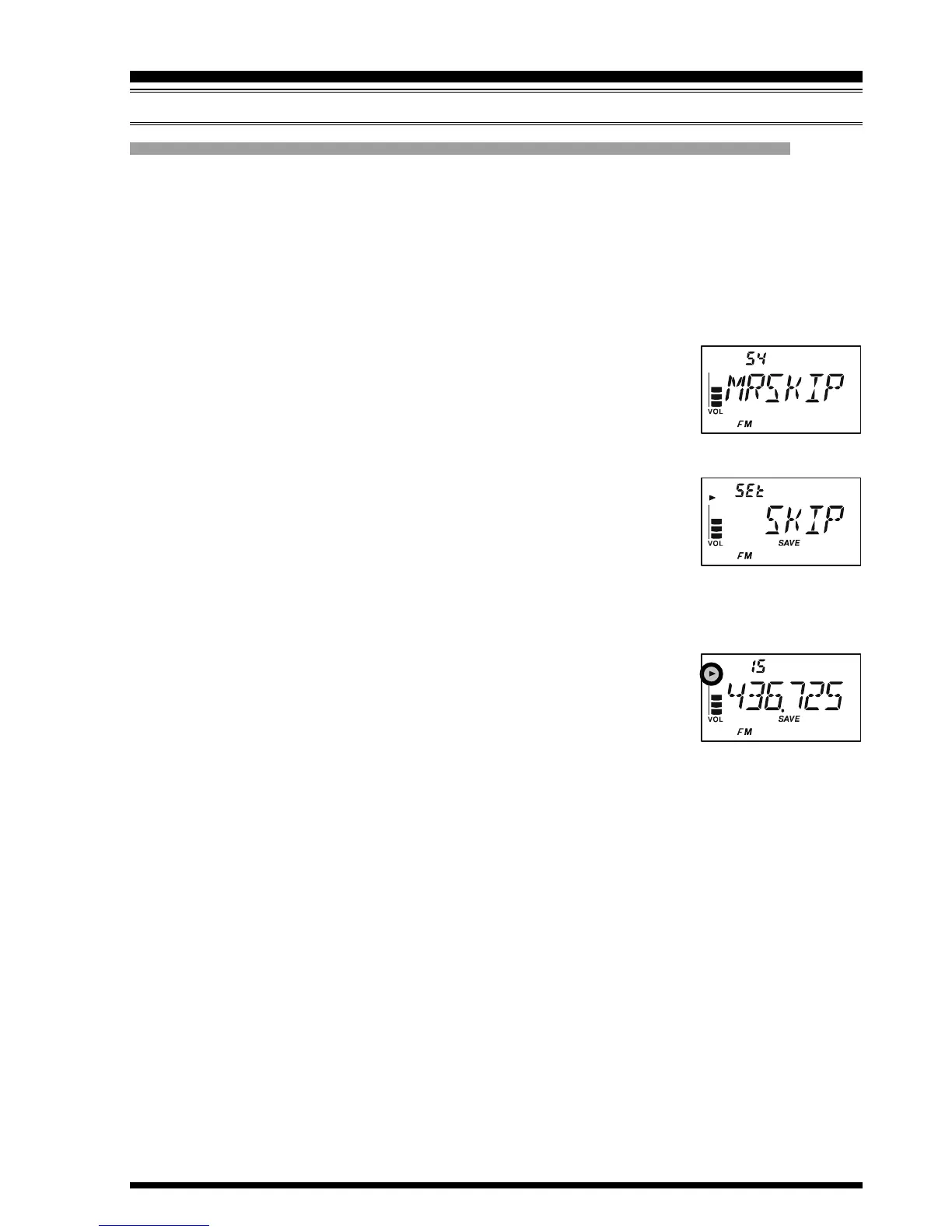5. Rotate the DIAL knob so as to select “SKIP.” The current Memory