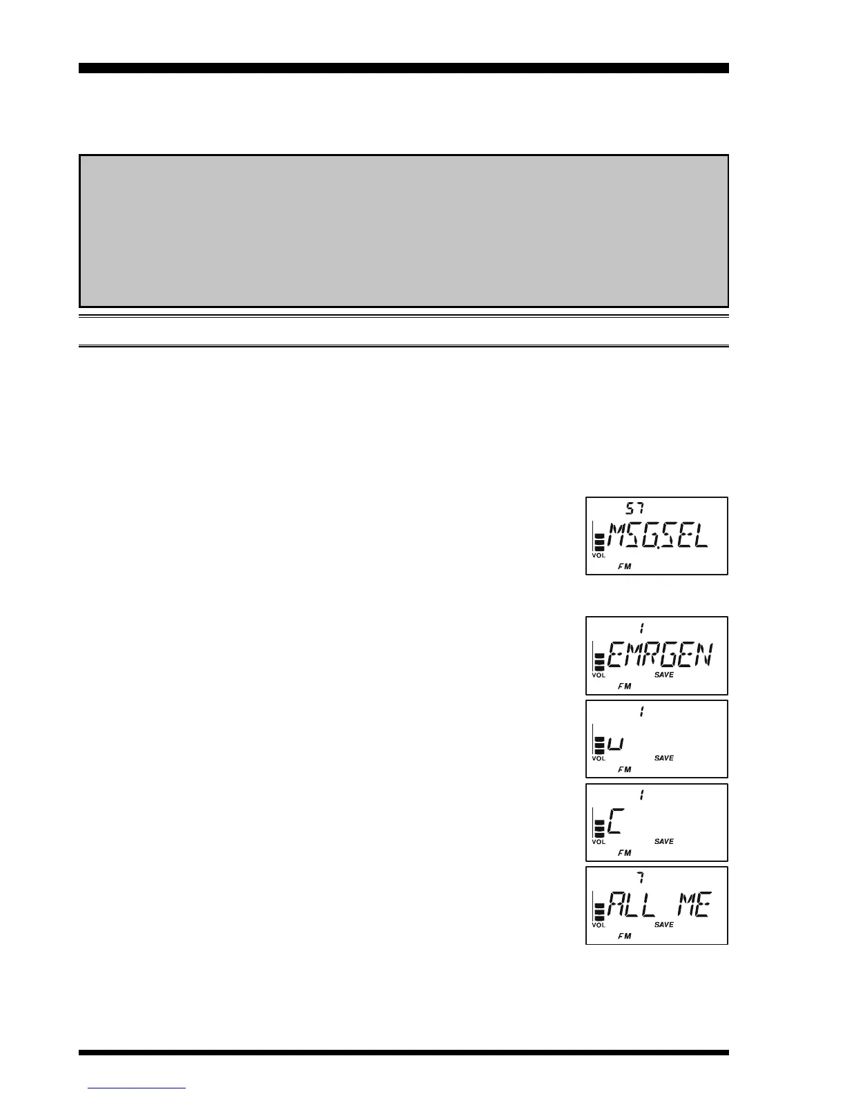 GENCY). The factory-programmed message of course can be overwritten at any time with