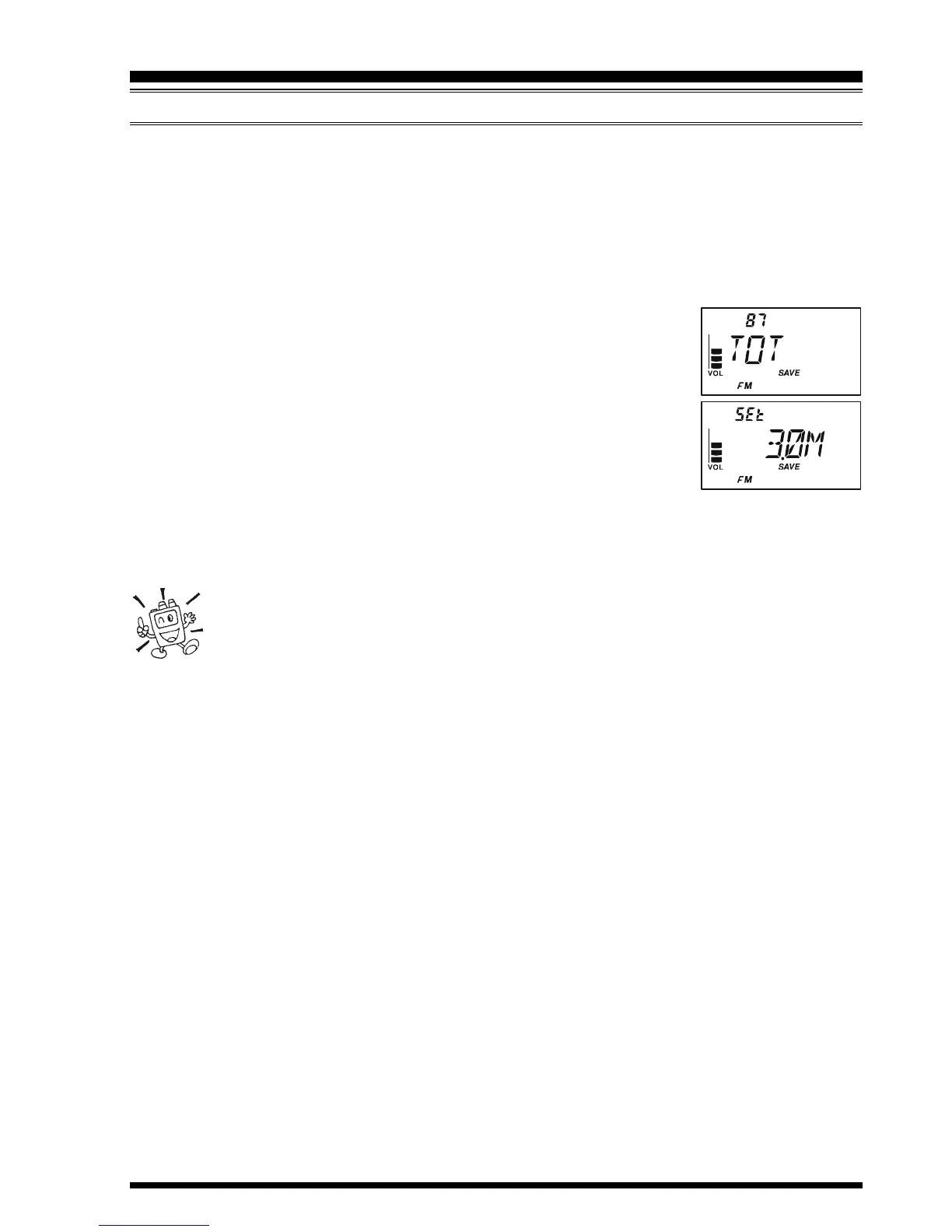 your radio’s TOT feature for a maximum transmission time of one minute. This will