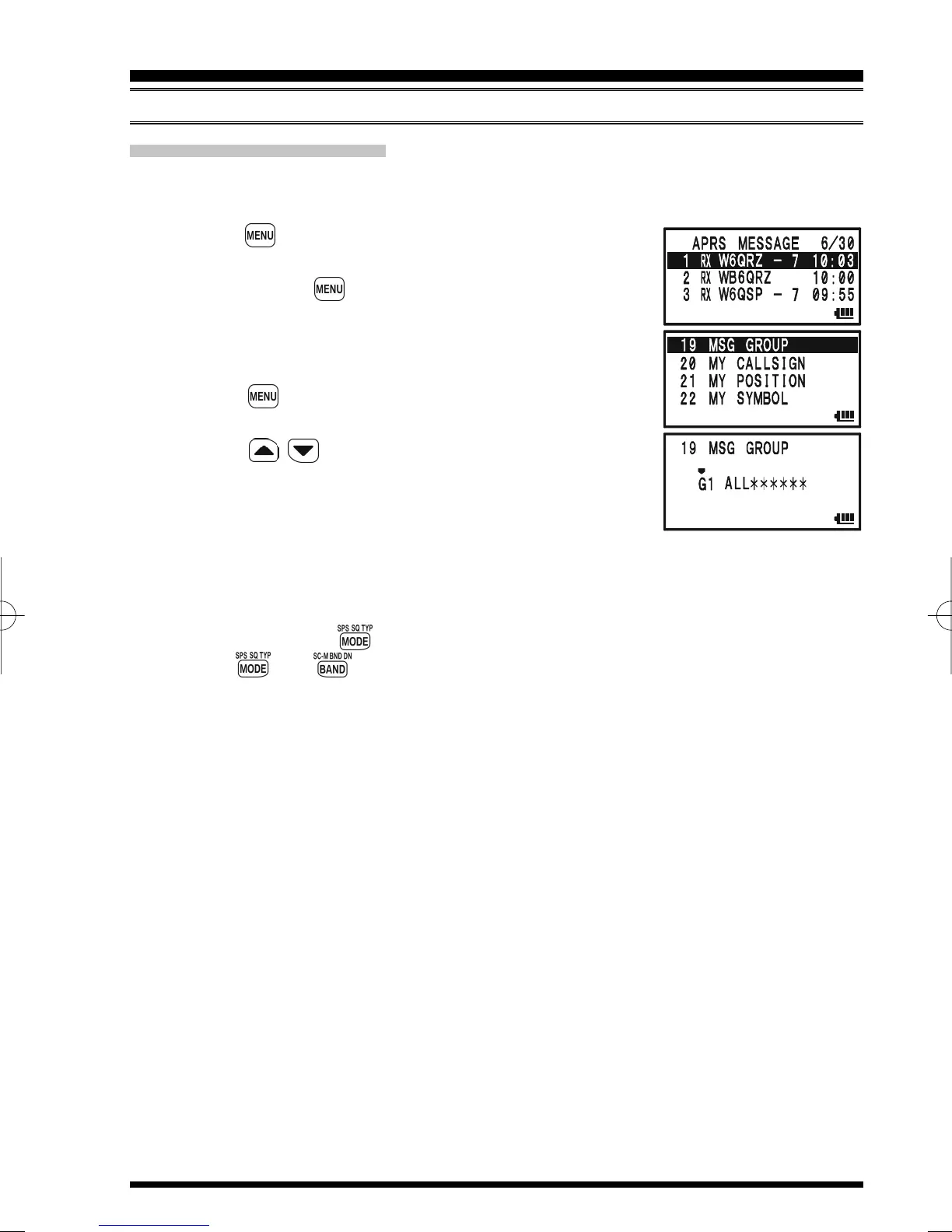 1. Press the key several times until the APRS MESSAGE