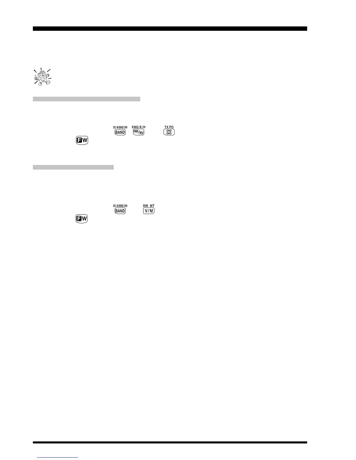 2. Press and hold in the and keys while turning the radio on.
