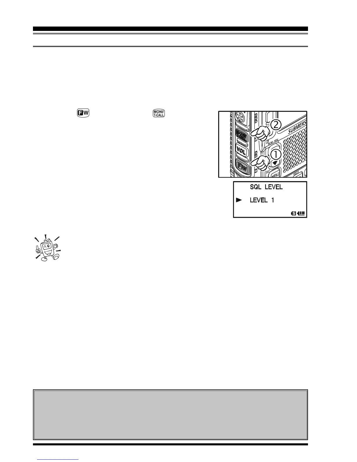 1) The Squelch level may be set on the “Main” and “Sub” bands separately.