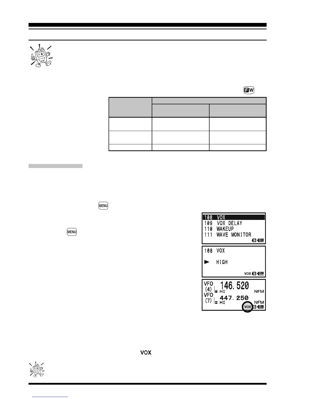 to transmit, and it is not necessary to use a VOX headset in order to utilize VOX operation.