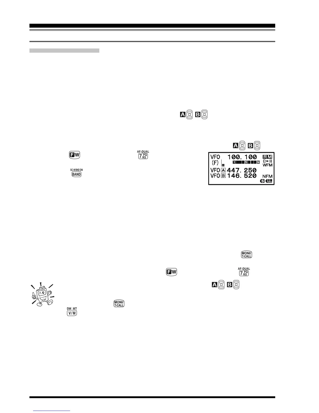 The AF-Dual Operation allows you to monitor two desired amateur band frequencies