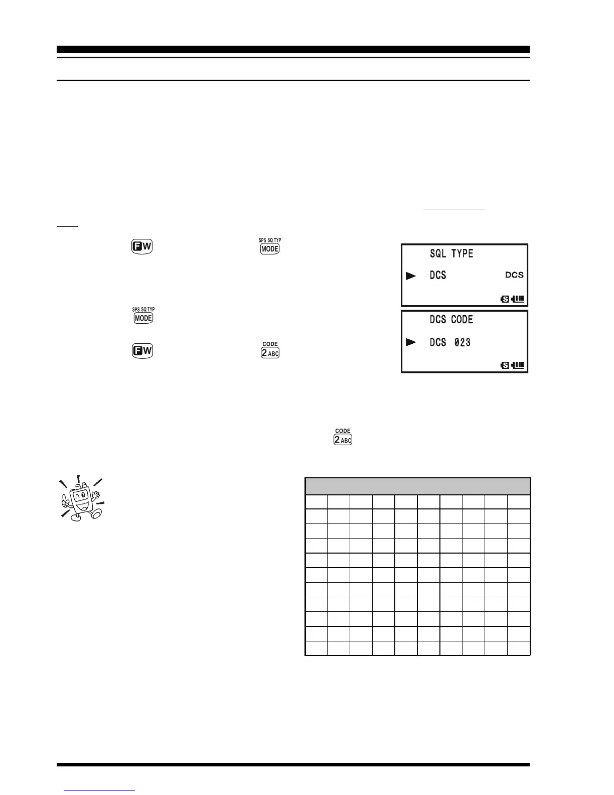 Note: Just as in CTCSS operation, DCS requires that you set the Tone Mode to DCS