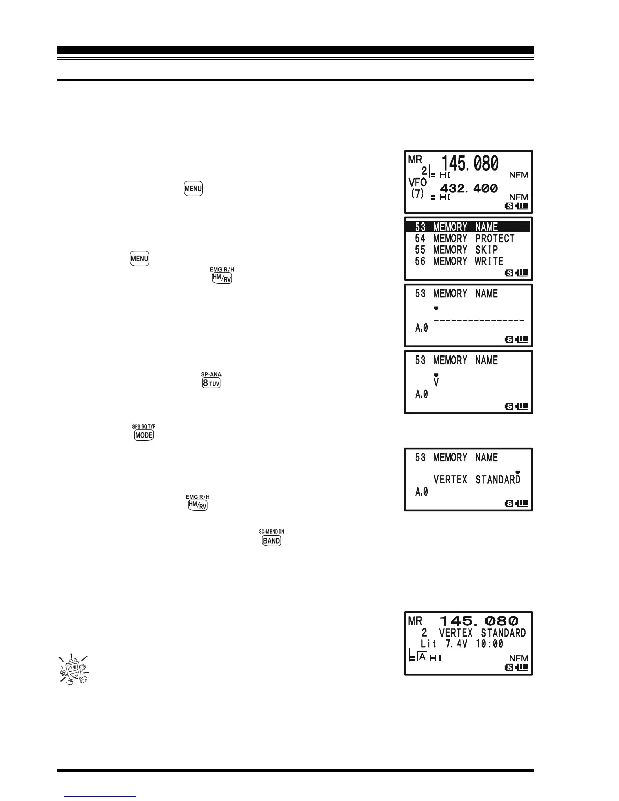 4. Press the key briefly to enable programming of the name