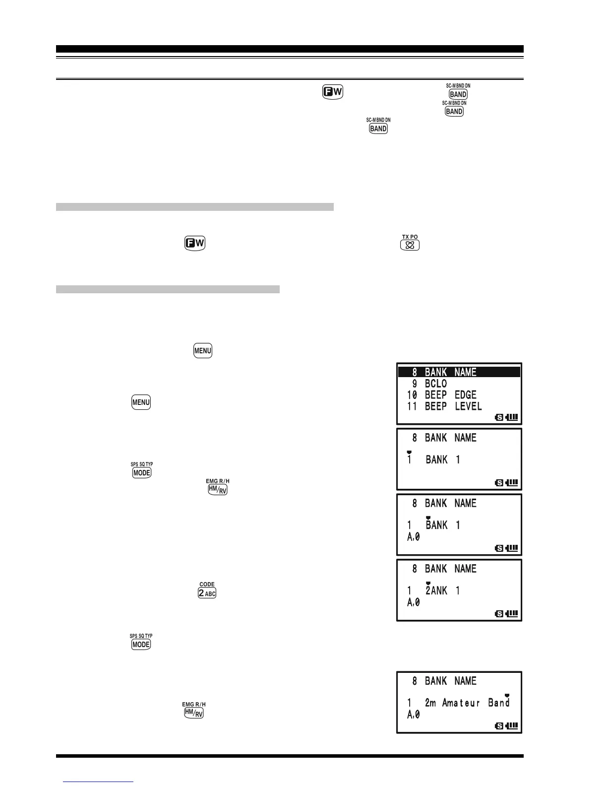 You may change the default Memory Bank Names, which are shown on the display while