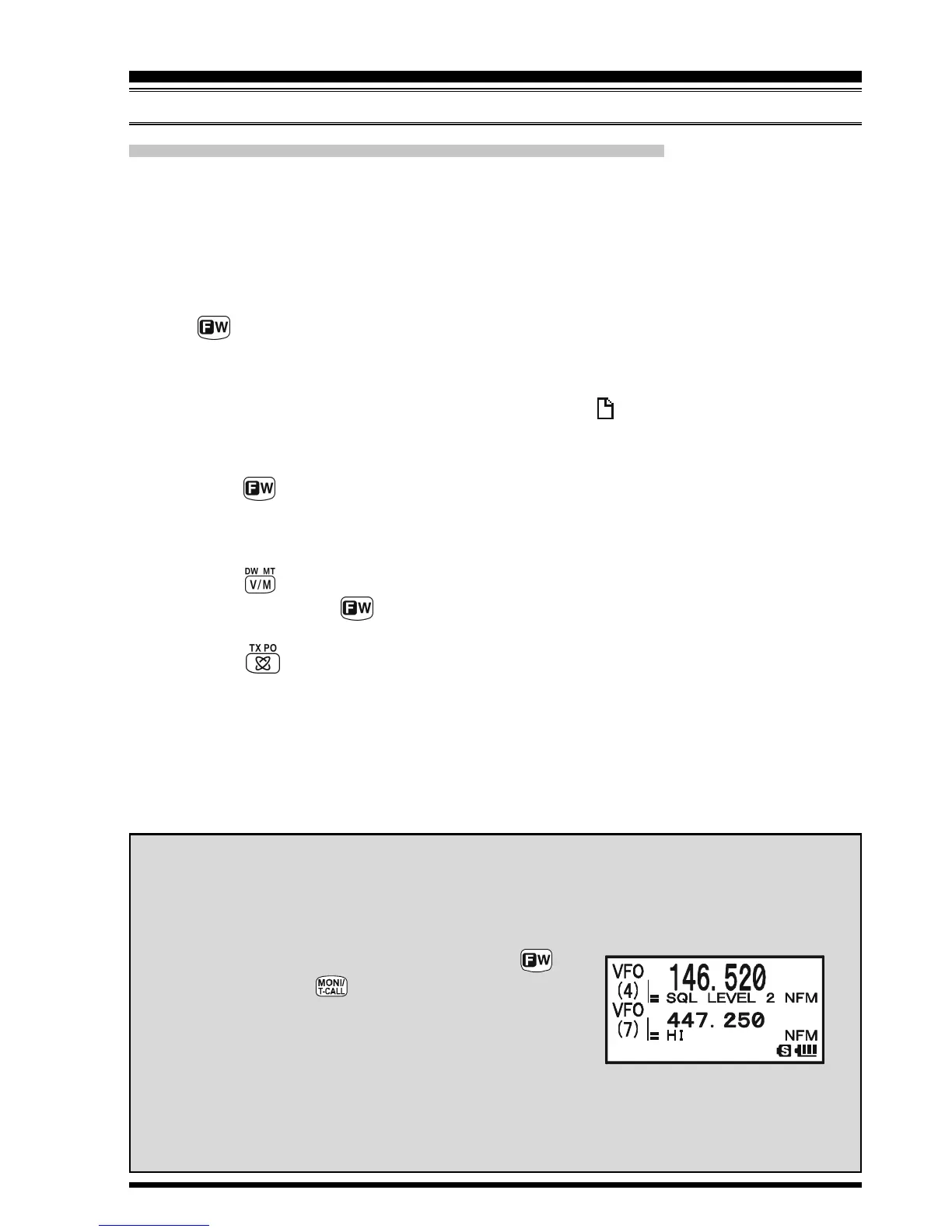 1. While VFO scanning is stopped on the frequency that you do not need, press and hold