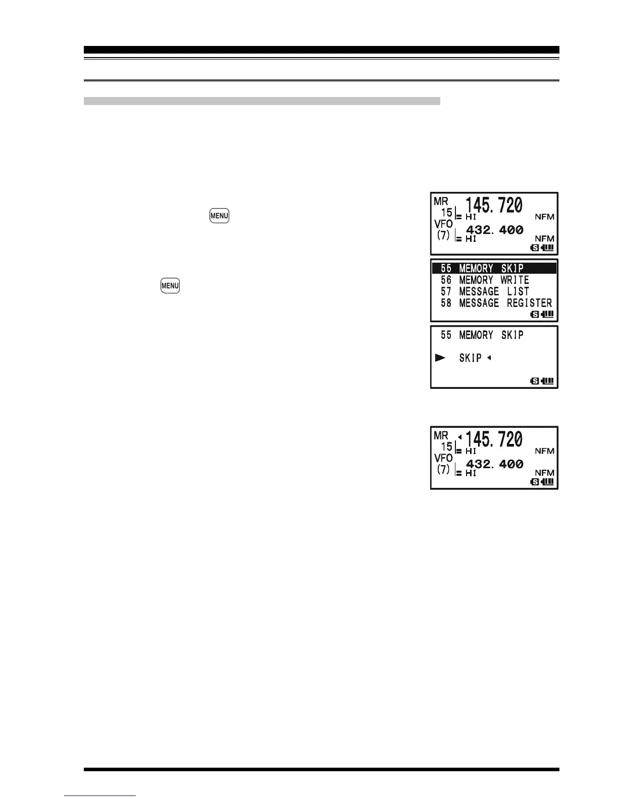 5. Rotate the DIAL knob to select “SKIP”. The current Memory