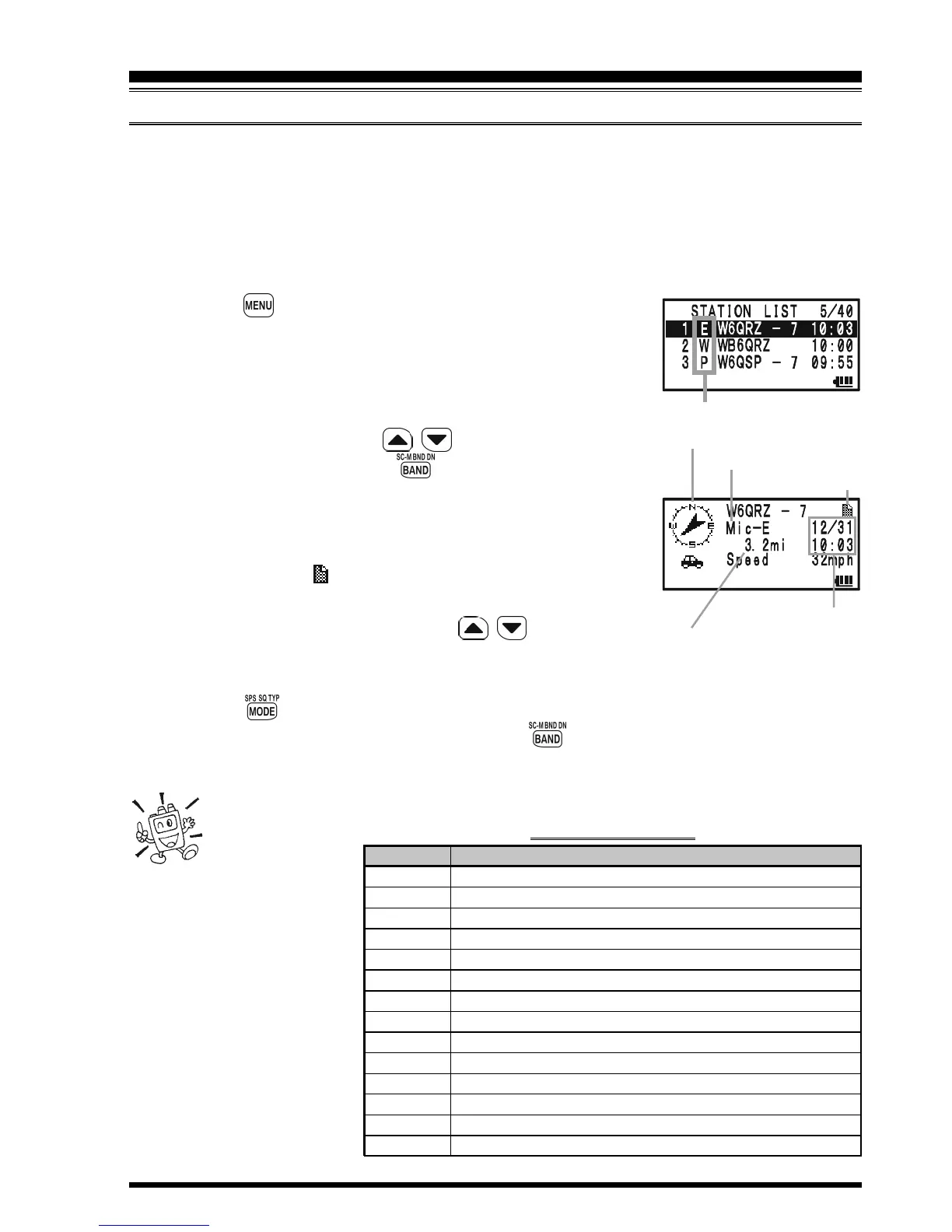 7. When the confirmation is finished, press the key to return to the STATION LIST