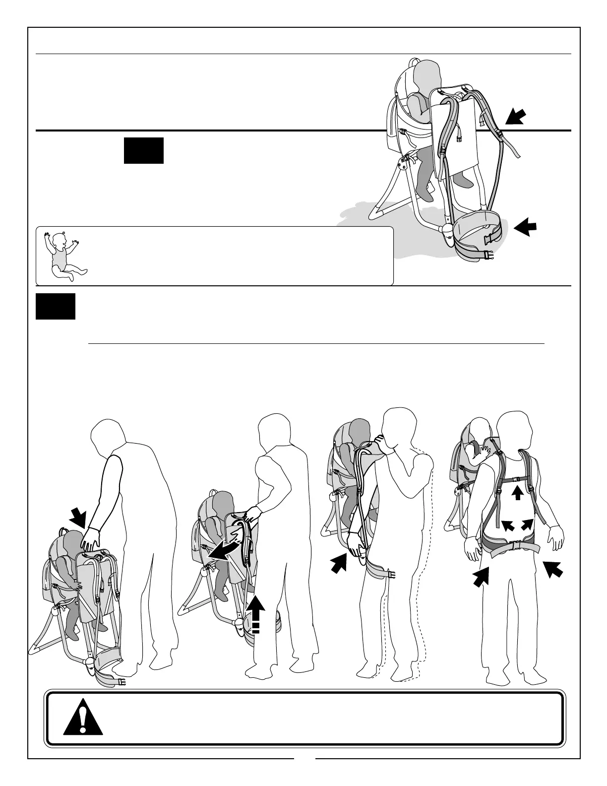 • Move into the pack—DO NOT SWING THE PACK ONTO YOUR BACK!
